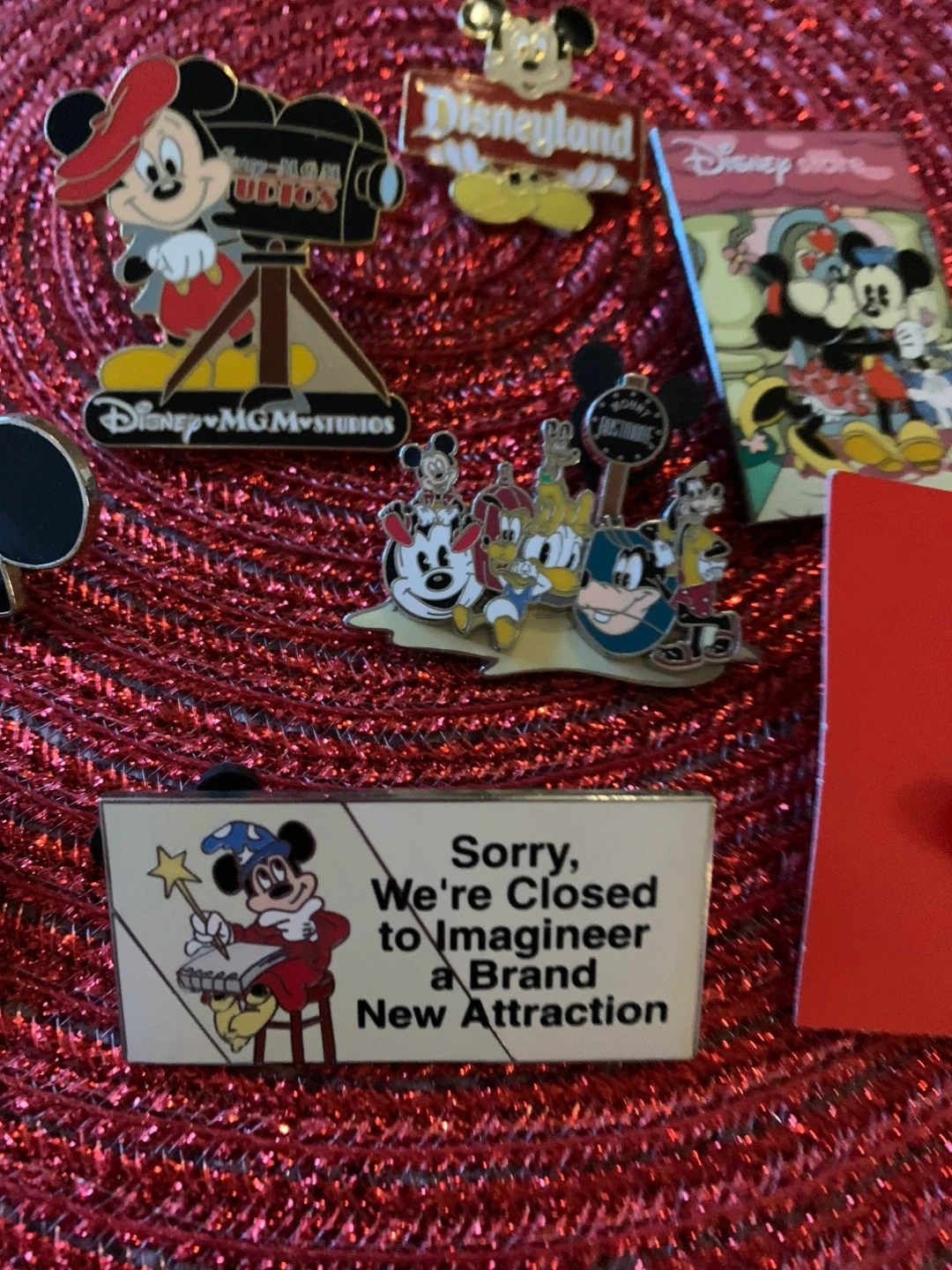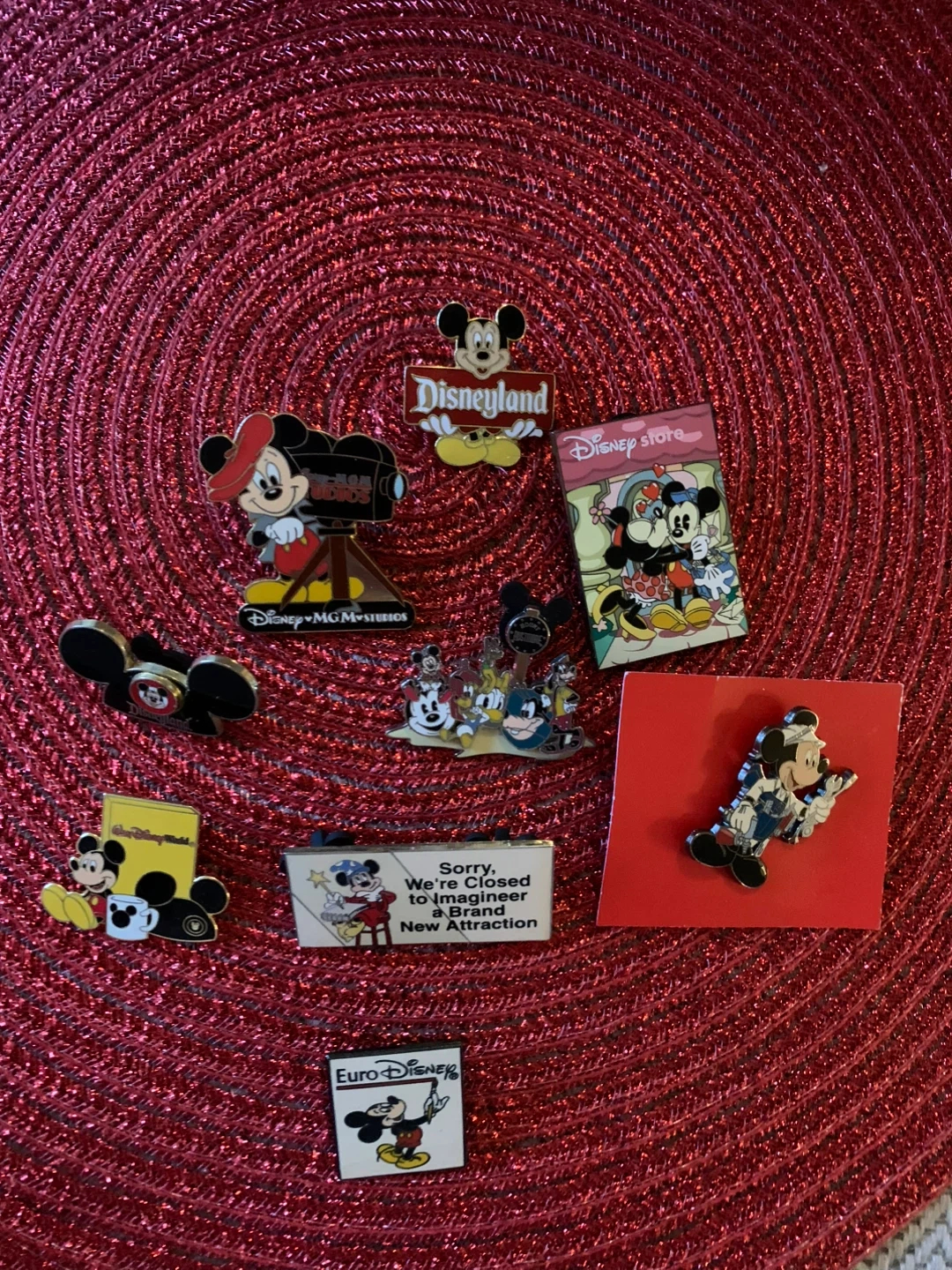 10A collection of Disney trading pins featuring Mickey Mouse and friends from Disneyland, Disney MGM Studios, and Euro Disney Mickey Mouse ear pins