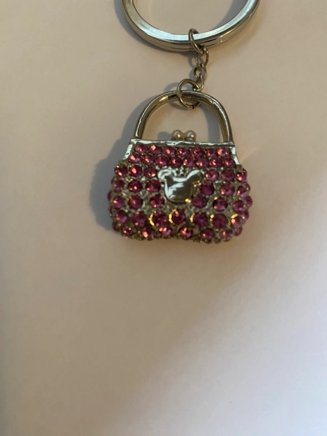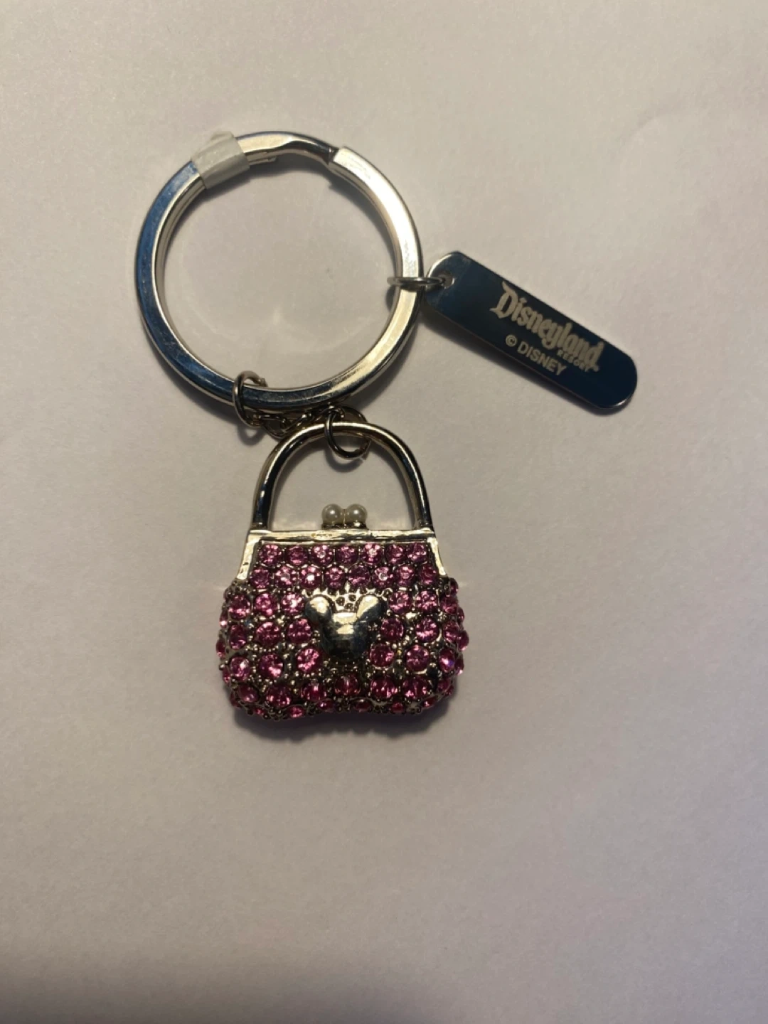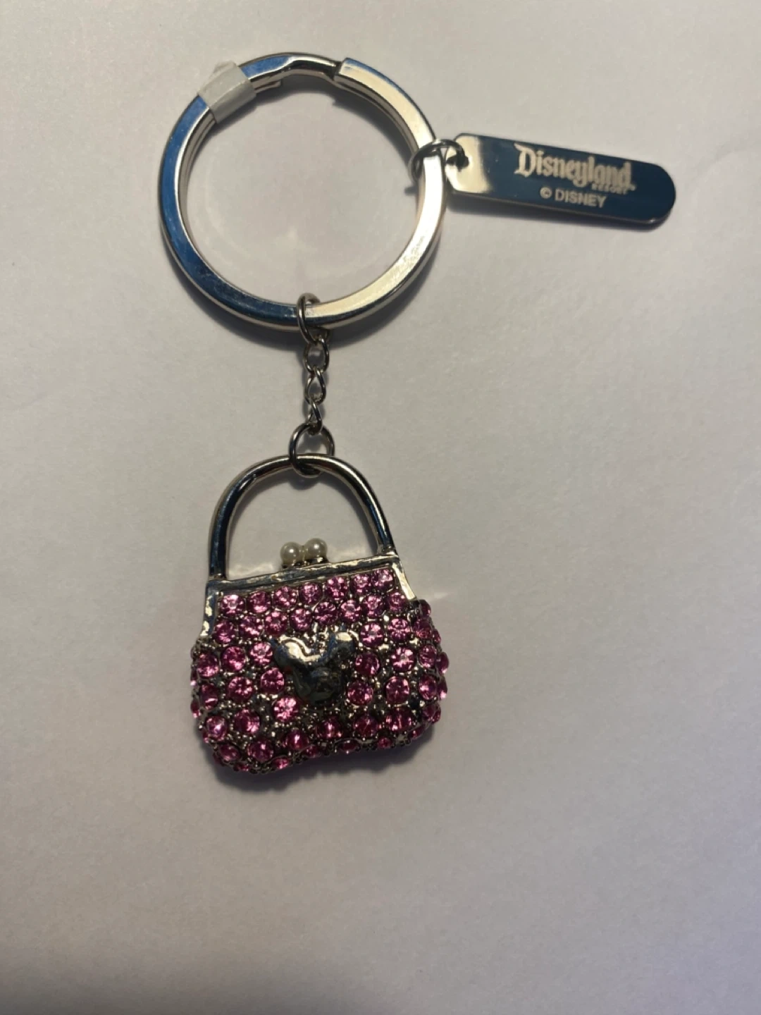 98Super cute Disneyland keychain! It's a mini purse shape and covered in pink rhinestones with two pearls for clasp Perfect for adding a bit of sparkle to your keys or bag