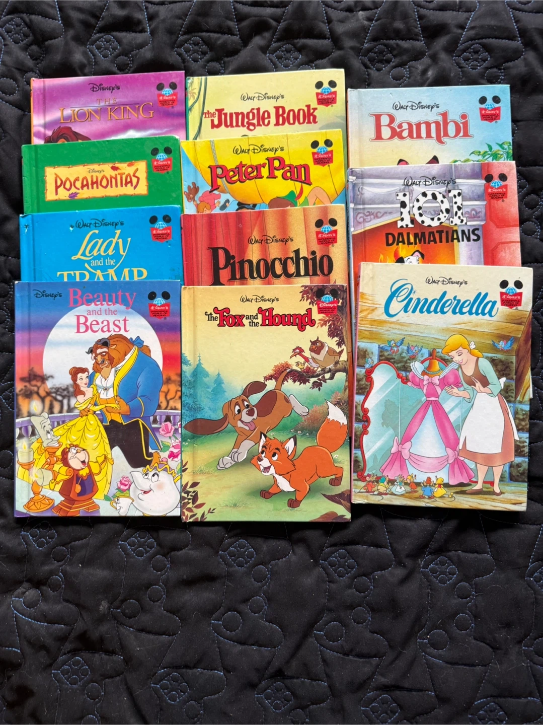 31Selling a collection of Disney's classic storybooks! Titles include The Lion King, The Jungle Book, Bambi, Pocahontas, Peter Pan, Lady and the Tramp, Pinocchio, 101 Dalmatians, Beauty and the Beast, The Fox and the Hound, and Cinderella. Perfect for young readers and Disney fans alike
