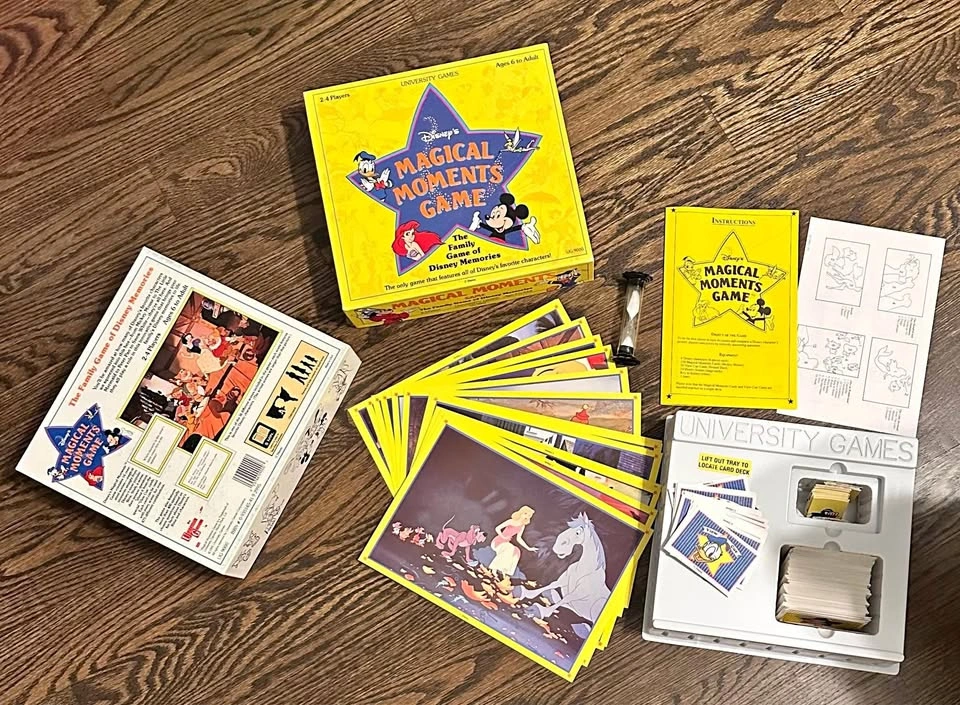 Selling a Disney's Magical Moments Game by University Games! It's a family game of Disney memories for 2-4 players, ages 6 to adult. This game features all of Disney's favourite characters. COMPLETE & like NEW.