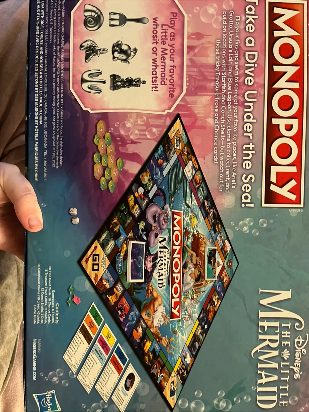 123Enjoy a dive under the sea with this Disney's The Little Mermaid Monopoly game! It's a fast-dealing property trading game perfect for family fun. Contents include gameboard, cards, tokens, shells, dice, and a game guide