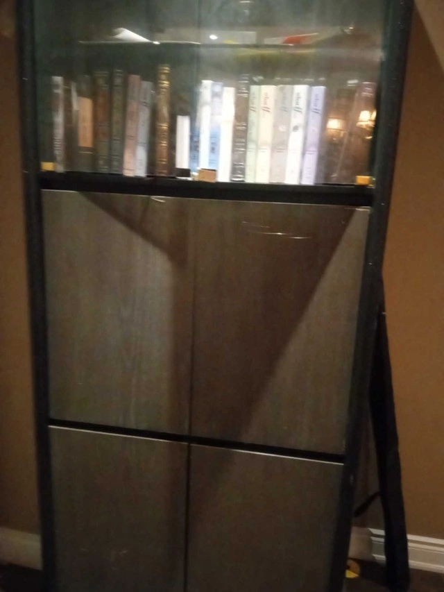 15This is a used display cabinet, perfect for showcasing your prized possessions or favourite books. It features glass shelving in the upper section and closed cabinet space below for additional storage. Additional details: * Glass Shelving * Bottom Cabinet Storage This cabinet is in good condition and ready to add elegance to your home. If the ad is up, it's available.
