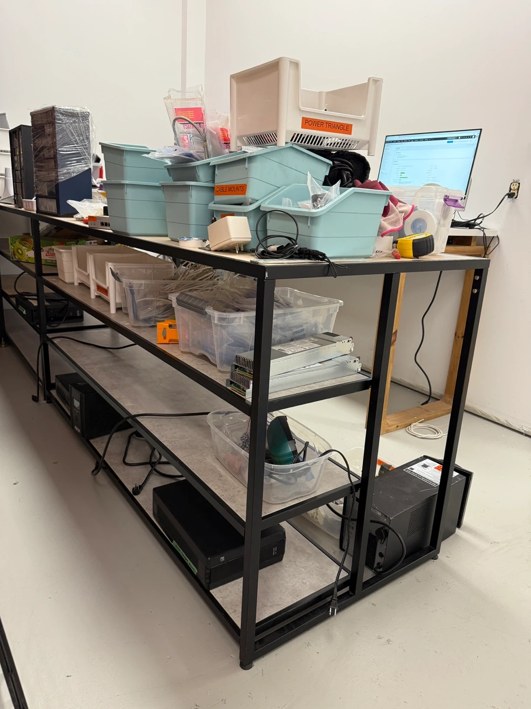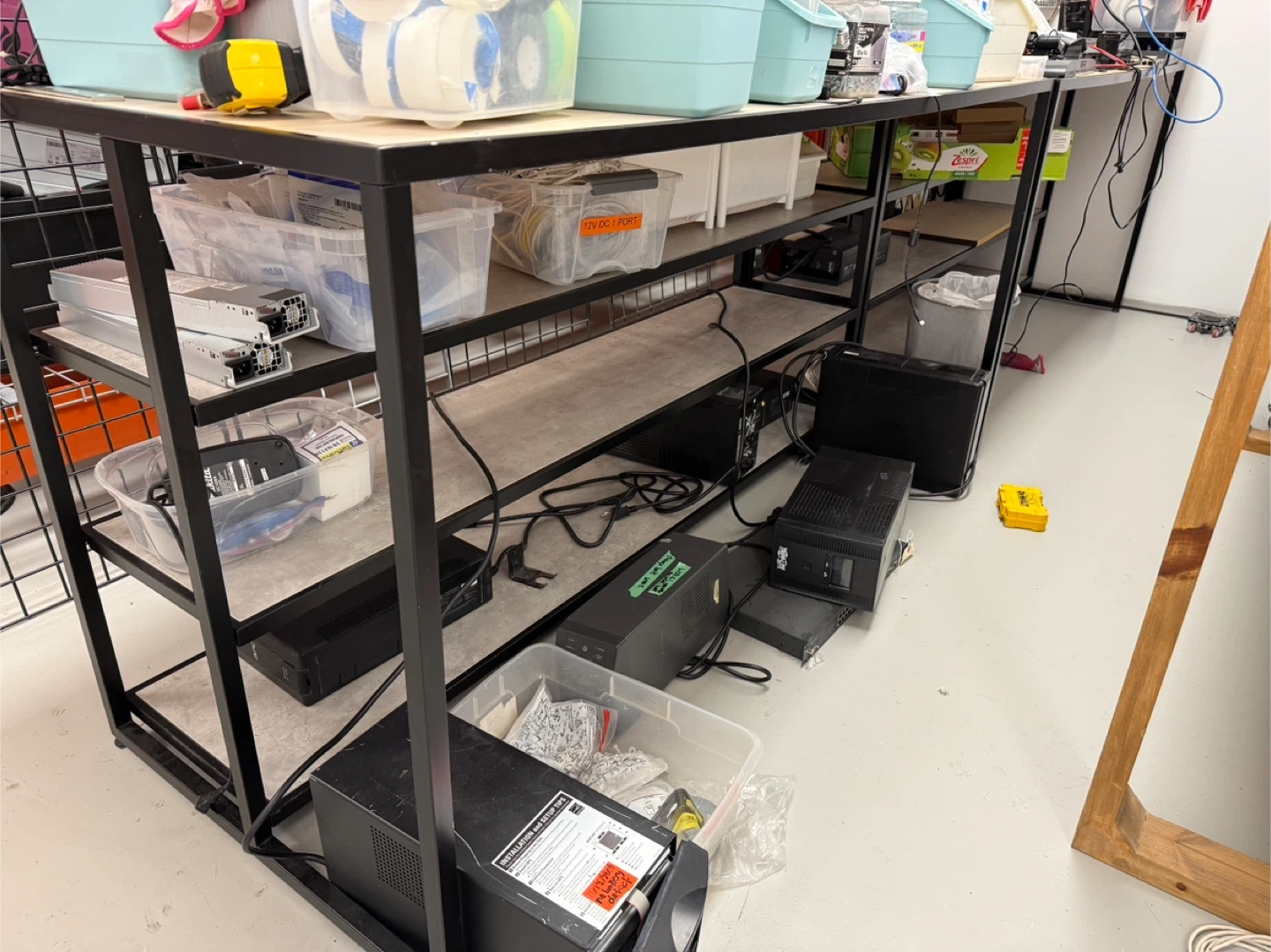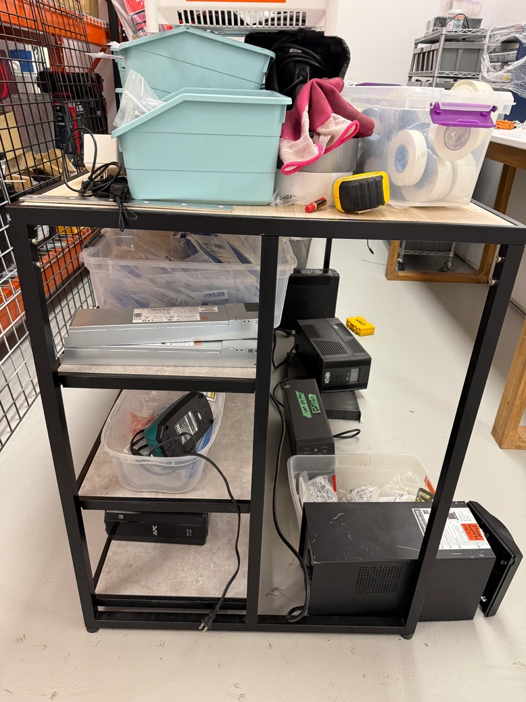 71Selling 2 of them. Store or warehouse use, standing height with 3 layers of shelves. 72 inch long, 30 inch wide Metal and laminated wood Used to be display products in showrooms. Price is for each.