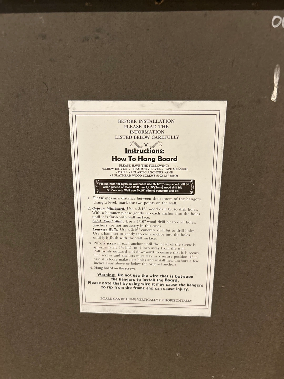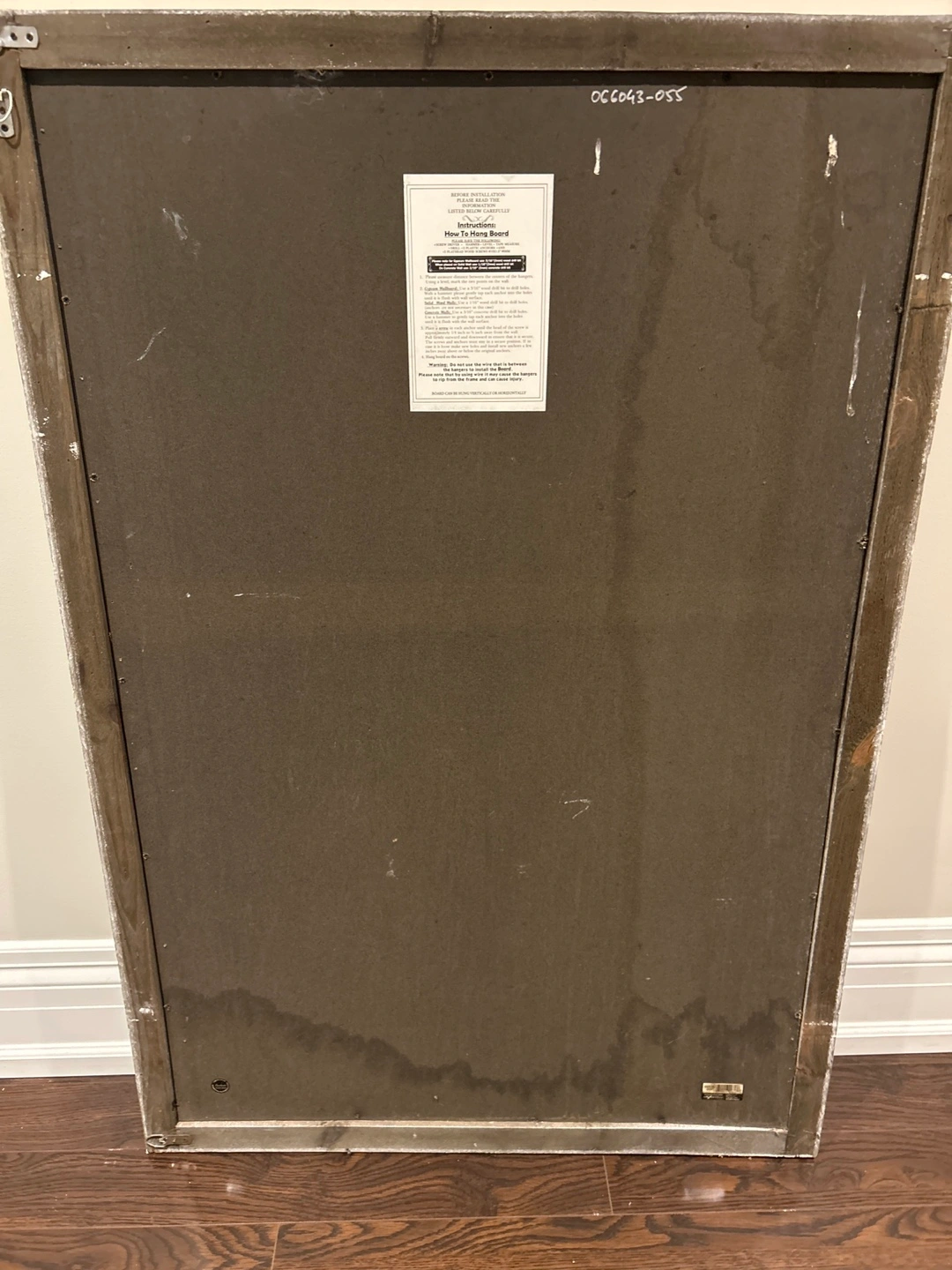 Selling a white distressed large picture frame or board. Can be hung vertically or horizontally. Aluminium board is in the frame.