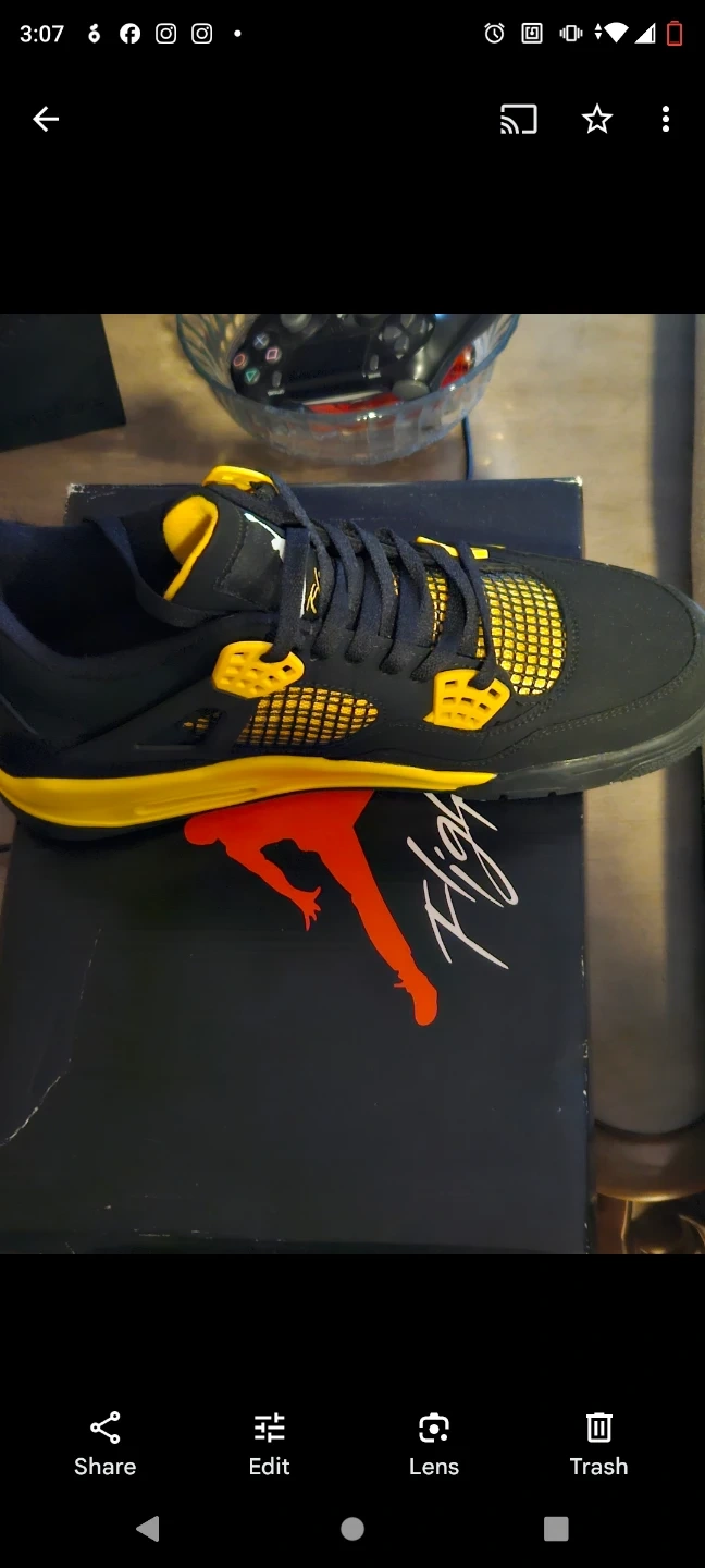 Selling a pair of Nike Air Jordan 4 Retro in black and lightening yellow. Comes with the original box! Artificial size 9