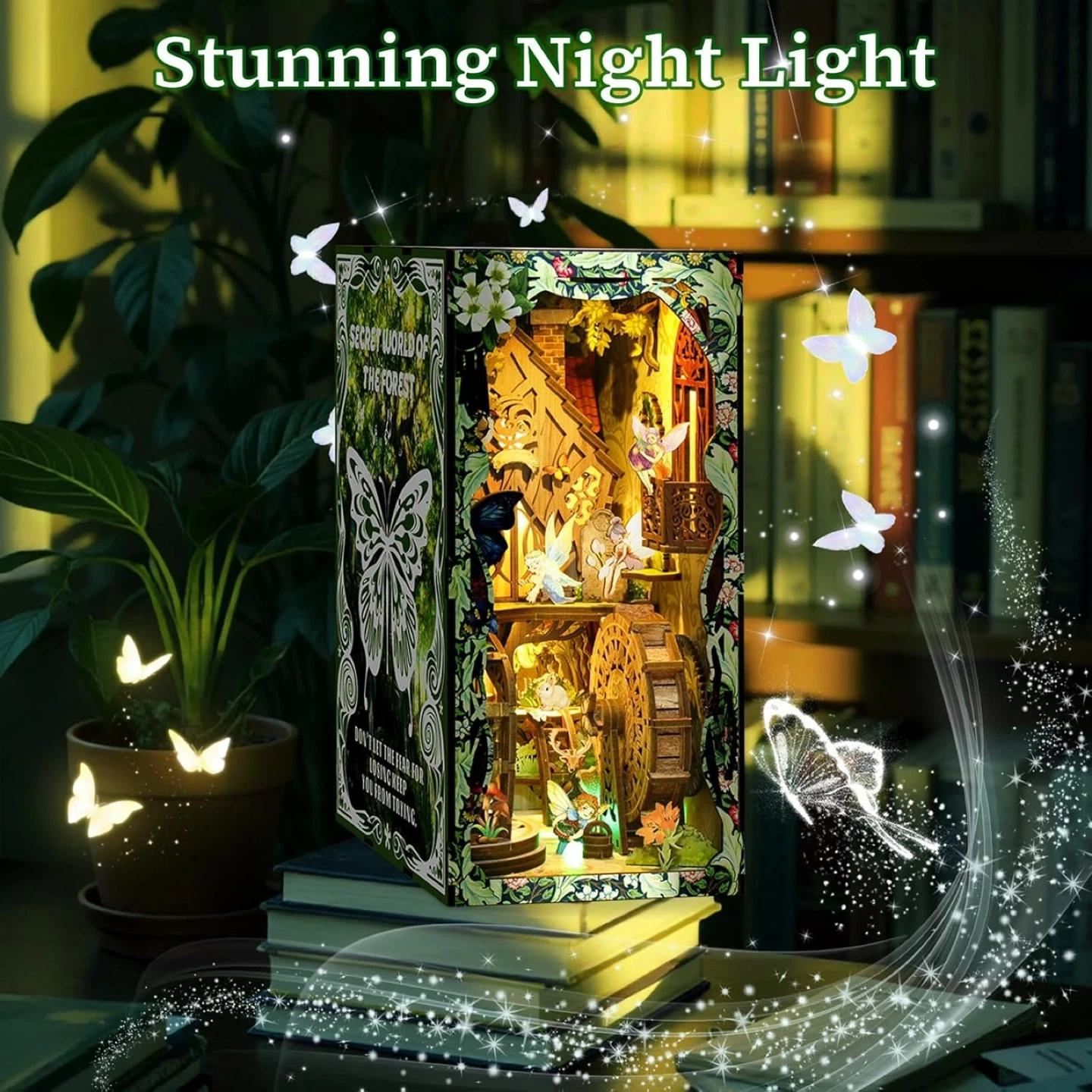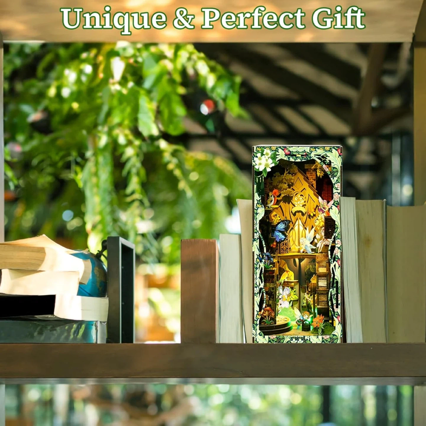 87Book Nook Kit: Made from premium wood, this DIY miniature world seamlessly combines art and function. Its innovative 3D puzzle design offers a rewarding hands-on project while adding charm and depth to any bookshelf. Built-in touch LED lights create a warm, inviting glow that brings the scene to life, turning your shelf into a window to another world.