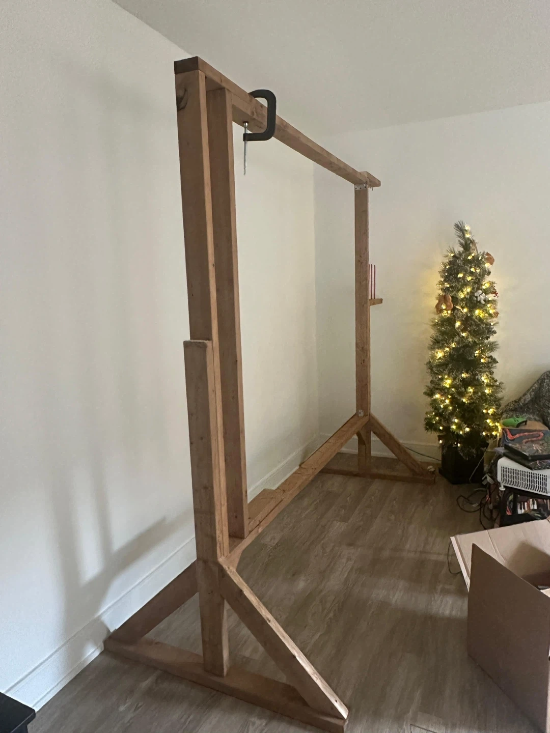 Selling a DIY wooden tufting table . With the extra piece of wood and clamps you can adjust its size . Build at home never used . 167 cm x 210 cm