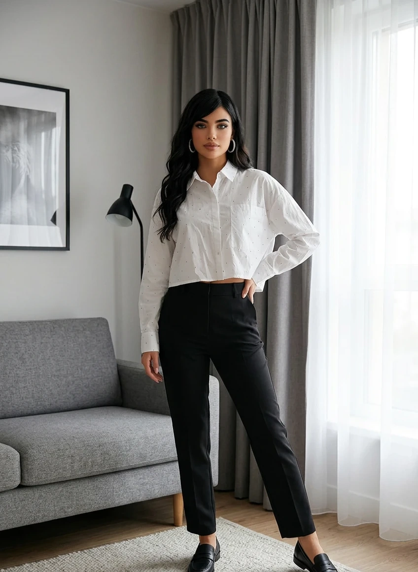 White Cropped Shirt with Small Dots