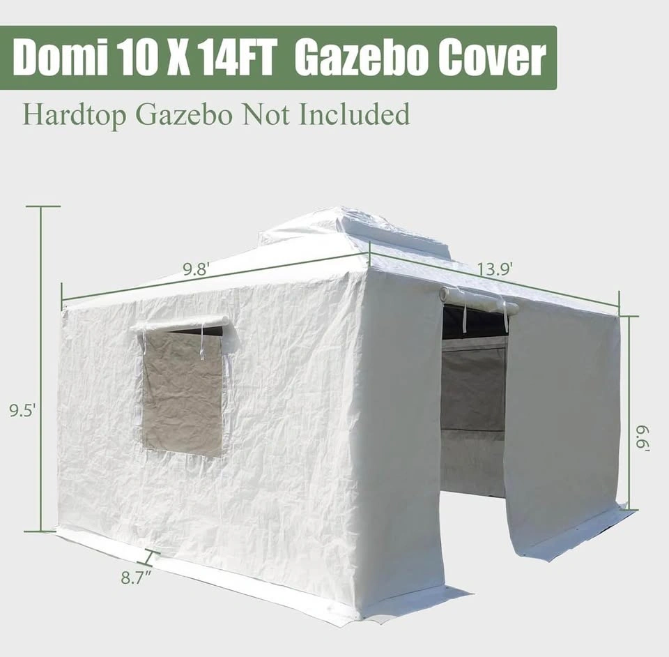 Brand new Domi 10’ x 14’ winter gazebo cover, still sealed in the box. All-season waterproof enclosure with sidewalls and mesh windows designed for 8x8 hardtop gazebos. Heavy-duty protection from rain, wind, snow, and insects.