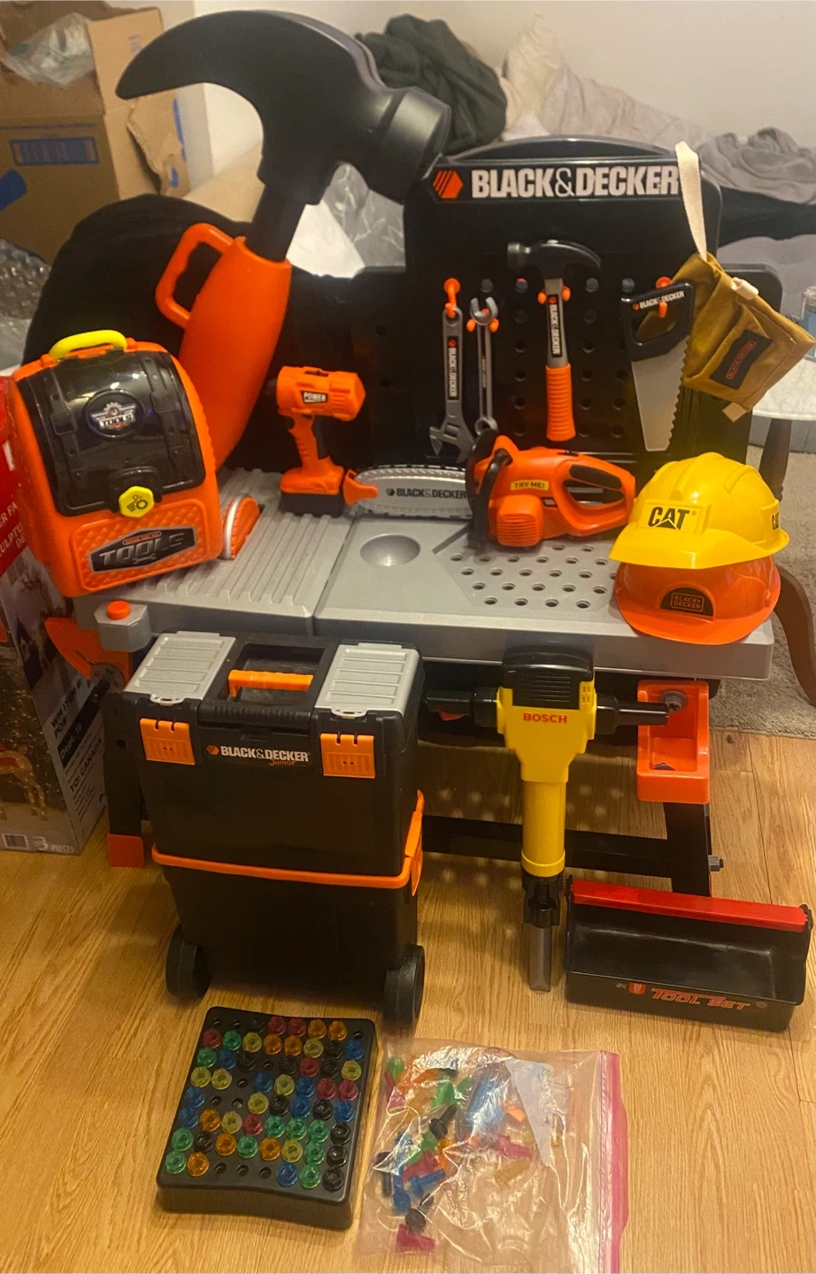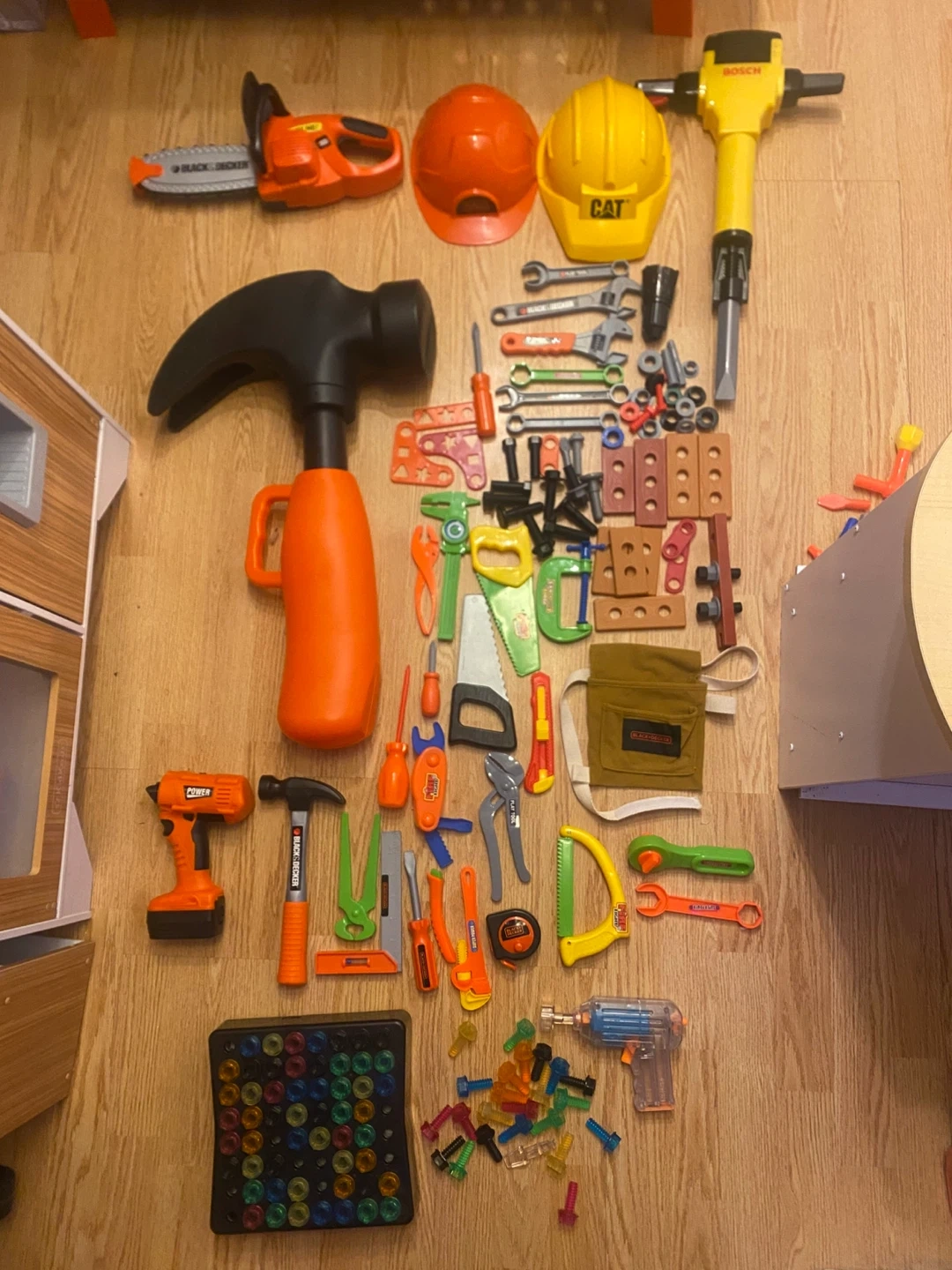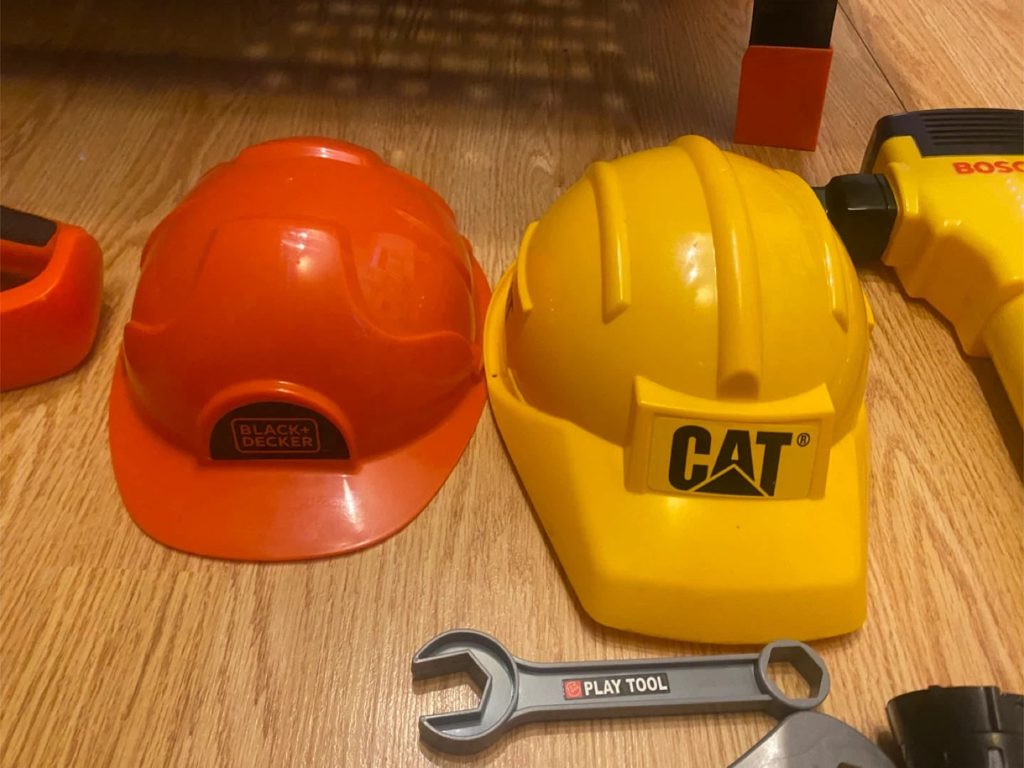 - 2 hard hats (Black + Decker, CAT brands)
