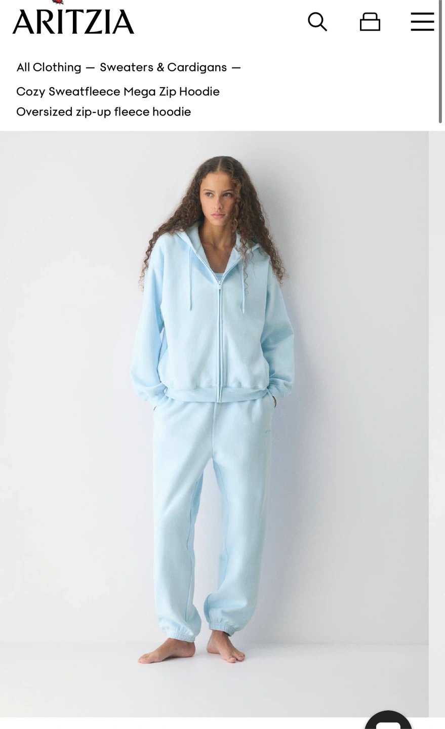 ARITZIA Cozy Sweatfleece Boyfriend Boxy Zip Hoodie Light Blue