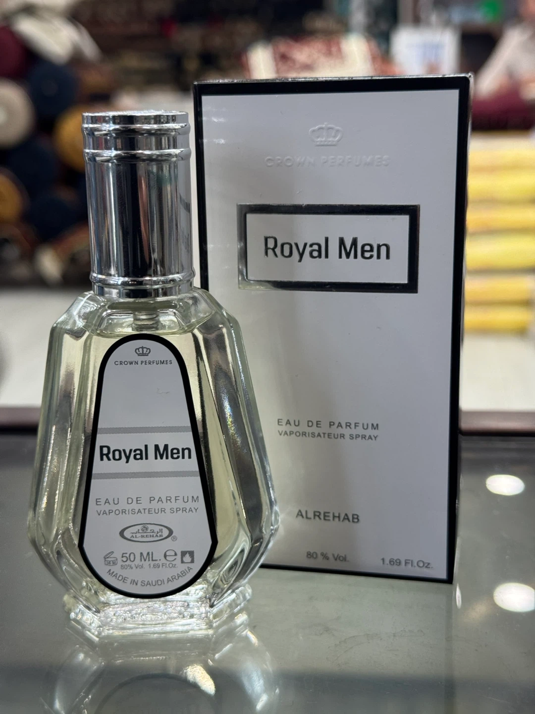 Royal Men fragrance by Al Rehab. Eau de Parfum spray. 50ml volume, 1.69 Fl.Oz. Made in Saudi Arabia.