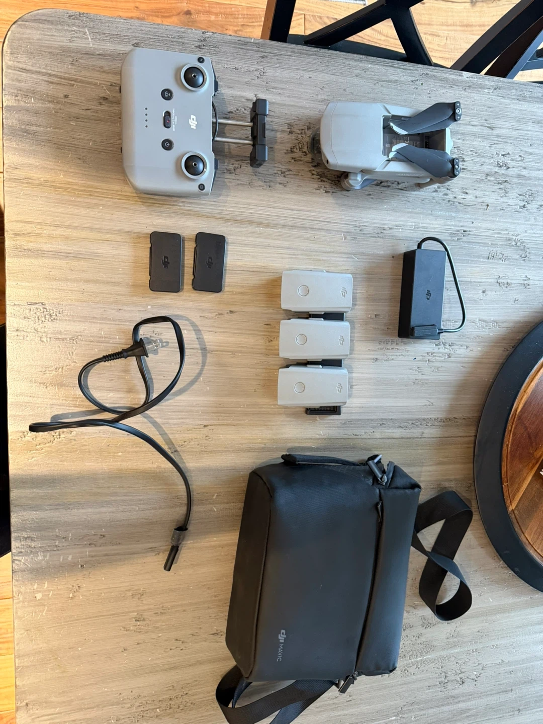 Complete DJI Mavic Air 2 Fly More Combo. Has the drone, remote controller, 3 iflight batteries, battery charging hub, power cable, and extra joysticks. Also includes the shoulder bag and 2 sets of DJI ND filters. Everything you need to get flying. Some wiggle room on price. Delivery avalible if you’re near the city and paying asking price.