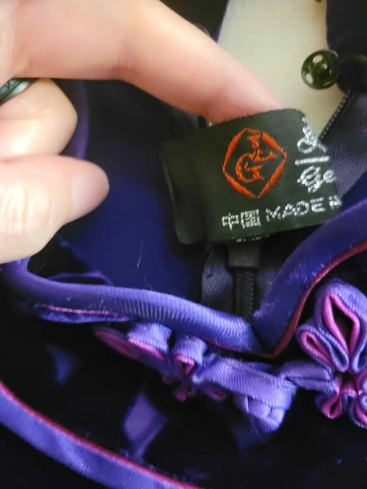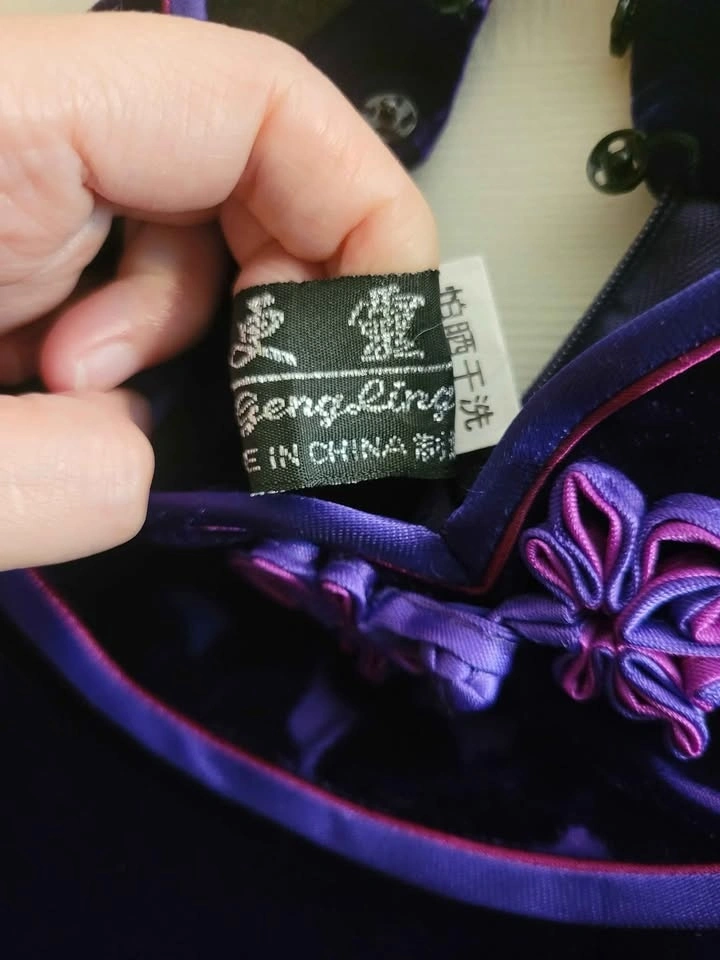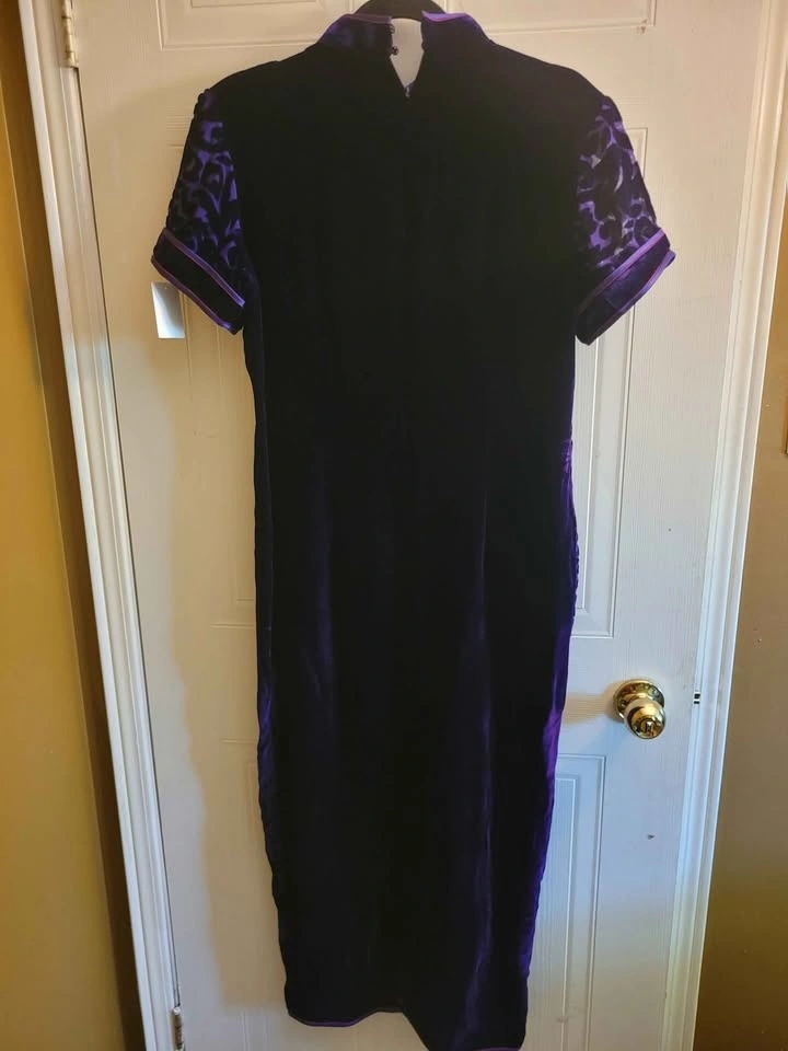 Vintage Velvet purple dress from China. Chinese styled design. Similar to Qipao/ Cheongsam dress. Very soft velvet.