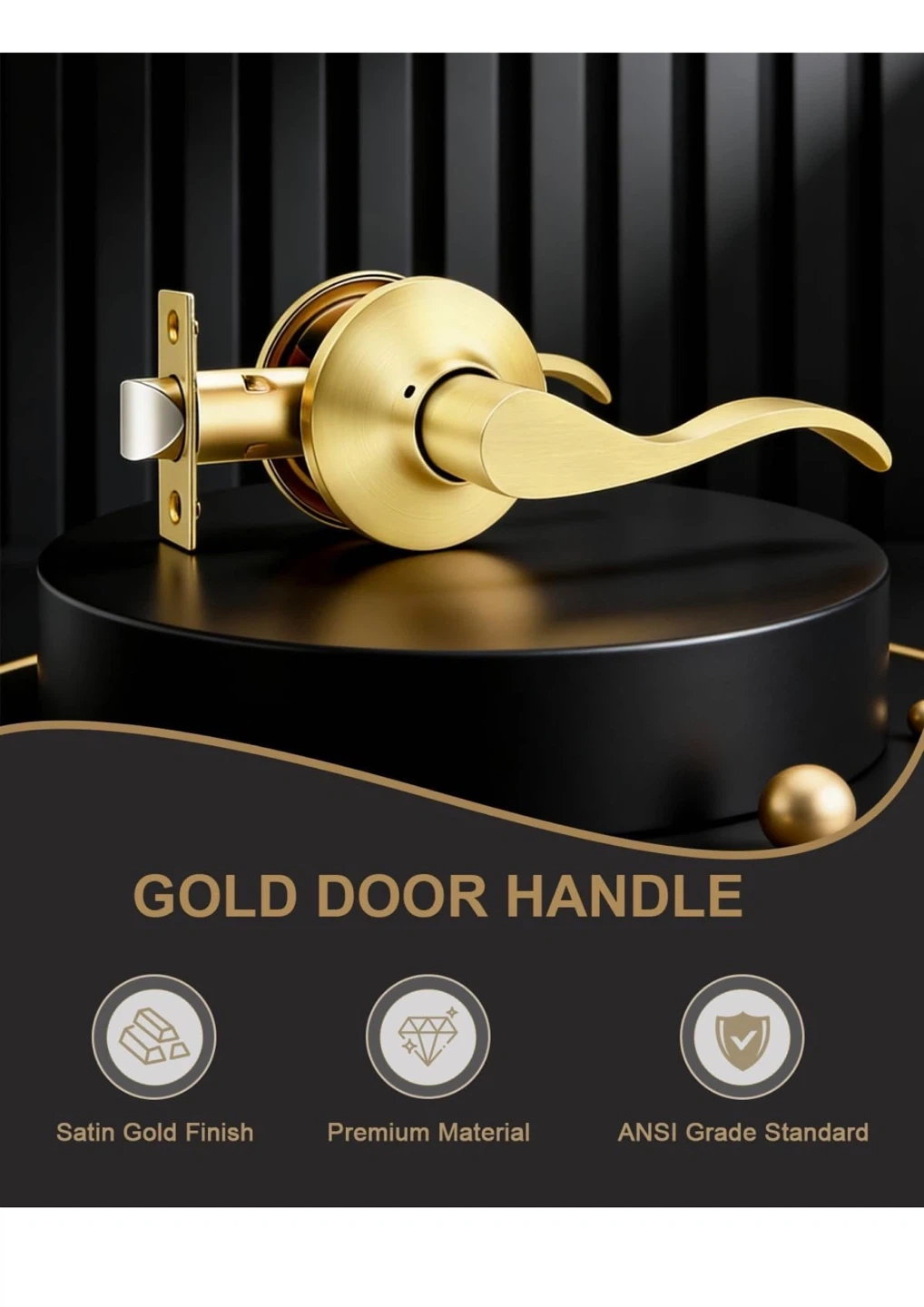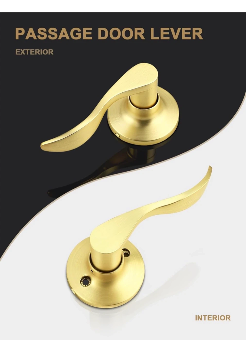 This is a 6 pack of GOBEKOR passage door levers. They feature a satin gold finish and a reversible design for left or right-side installation. These levers are keyless and built to ANSI Grade Standard.