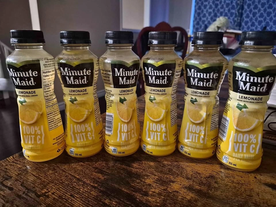 Brand new lot of 6 Minute Maid Lemonade juice bottles for $4. Pick up in Derry & McLaughlin area.
