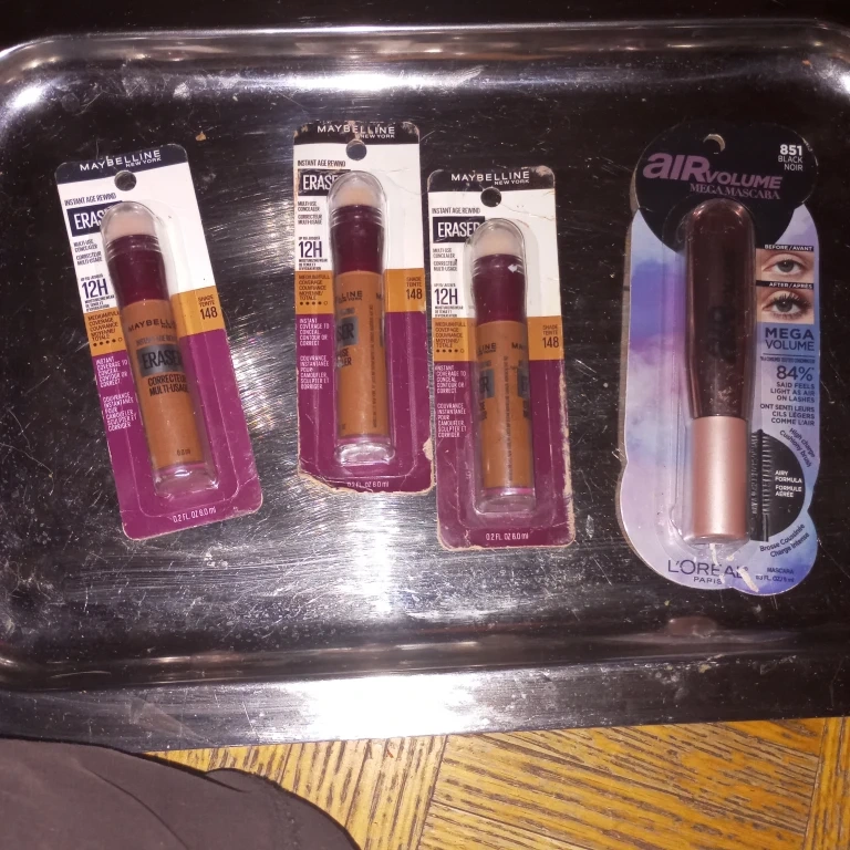You'll find concealers, blushes, and mascara.