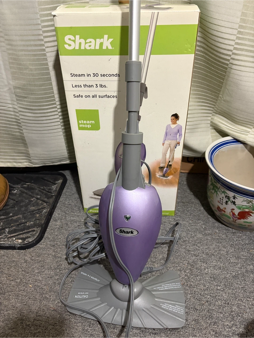 This is a Shark steam mop. It steams in 30 seconds and weighs less than 3 lbs. Safe on all surfaces. It's a handy tool for cleaning your floors!