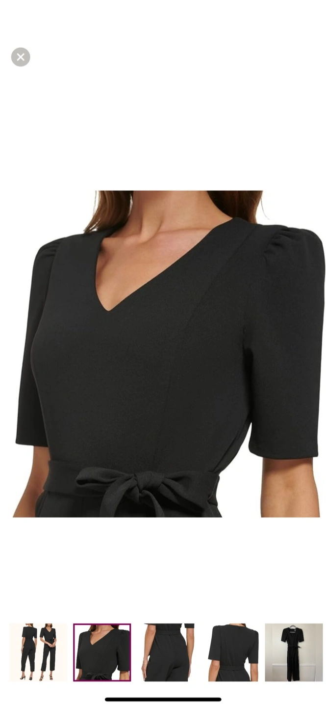 Selling a DKNY black jumpsuit in excellent condition! It's a size US 2. The material is 94% Polyester and 6% Spandex, making it comfortable and easy to care for. Perfect for any occasion!