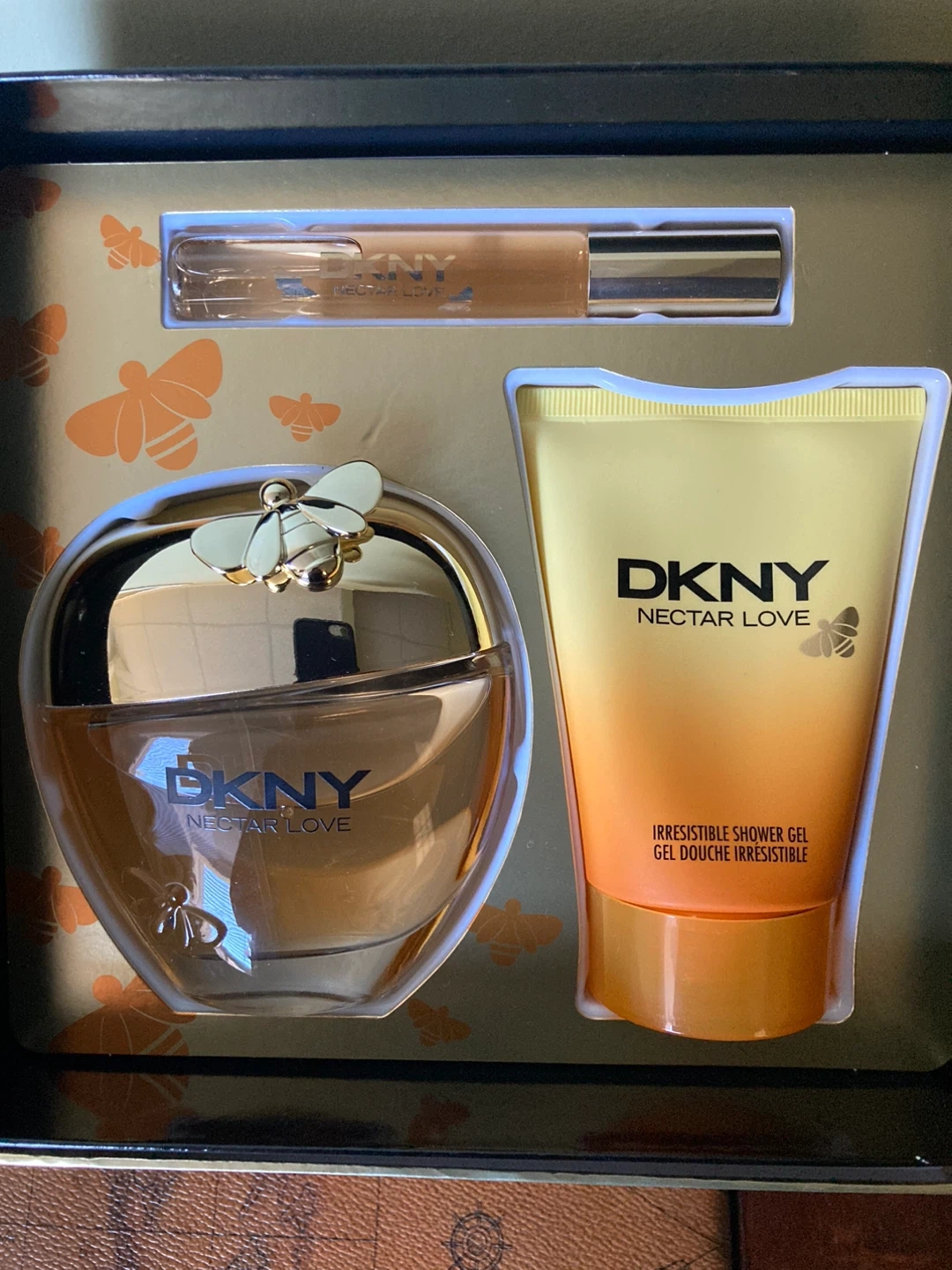 63Selling a DKNY Nectar Love Blockbuster set! This set includes Eau de Parfum spray (3.4 fl oz), Irresistible Shower Gel (3.4 fl oz), and Eau de Parfum Rollerball (0.34 fl oz). It comes in its original box, making it perfect for gifting or treating yourself