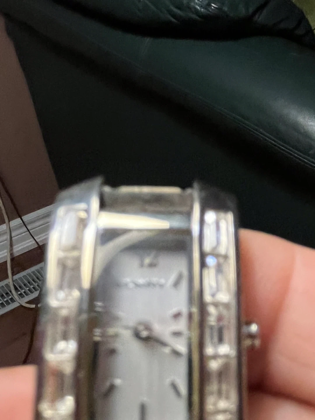 20Selling a DKNY watch with a silver band. It has a rectangular face with crystal accents. It's in good condition and ready for a new home