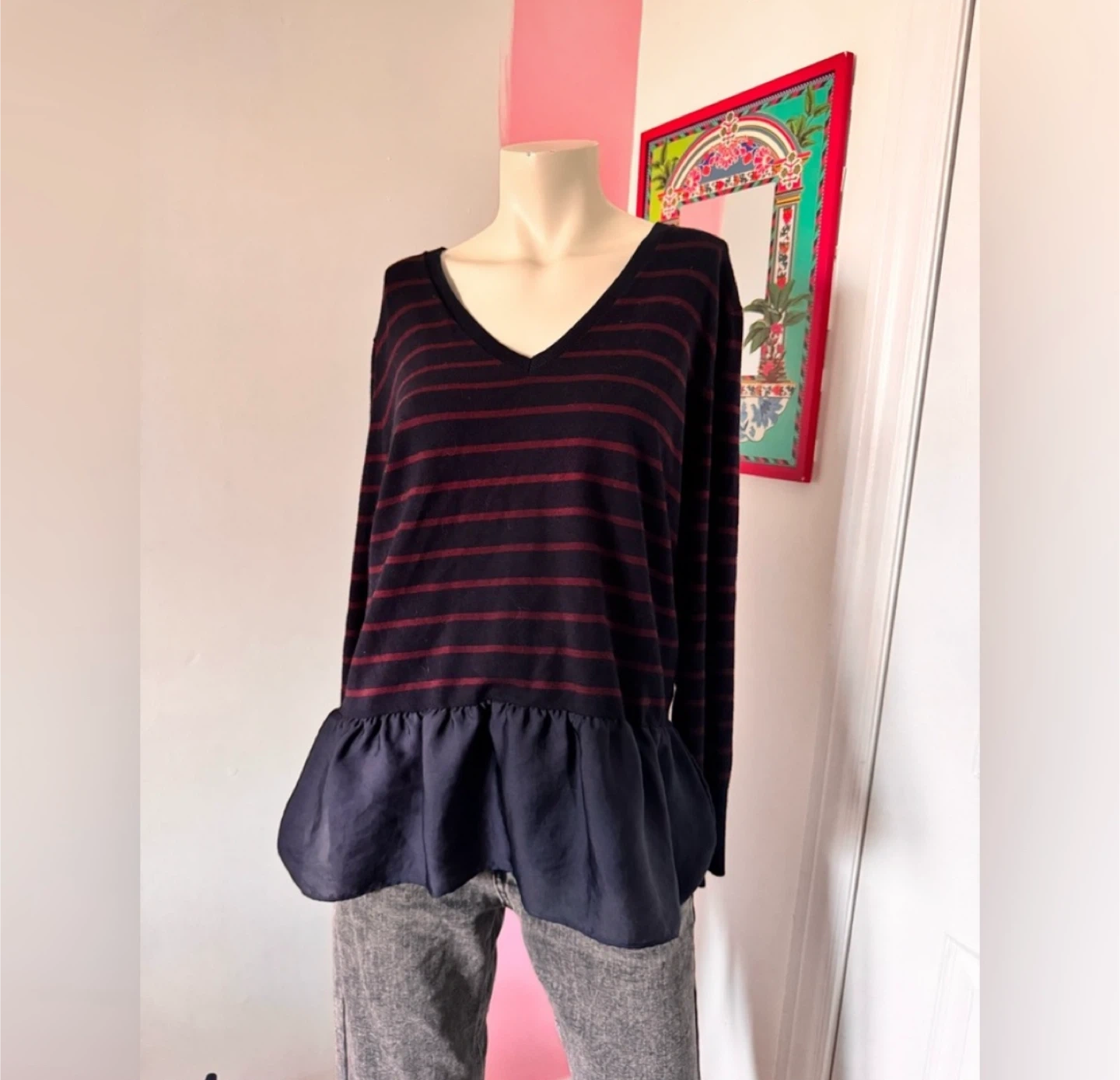 19Brand: DKNY Size: I believe size XL, doesn’t say on tag Measurements: Length: 28” with lace, 22” without lace Pit-to-Pit: 20” Shoulder Width: 9” Sleeve Length: 24” Hem Length: 20” shirt hem, 27” lace hem Sleeve Cuff Length: 4” Neckline Depth: 9” Vcut Neck Length: 10” x 2 Material: Viscose, Rayon, Nylon, Polyester Condition: EUC Will accept either e-transfer or exact cash. Can do porch pickup if money is e-transfered beforehand. Serious inquiries only NEED GONE ASAP FASTEST PICKUP PREFERRED