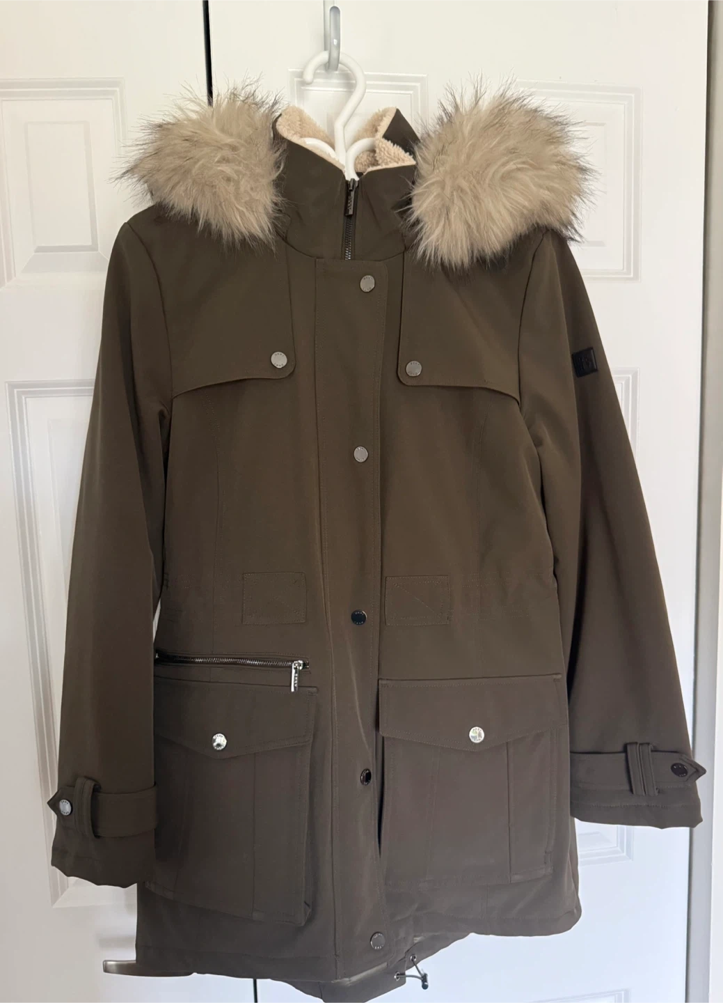 DKNY Women’s Parka w/ Faux Fur Hood Worn once, Size Medium Color: Khaki Green Price: $100 OBO! Pickup: Guelph, ON Meetup (TBD): Mississauga, Milton, Cambridge