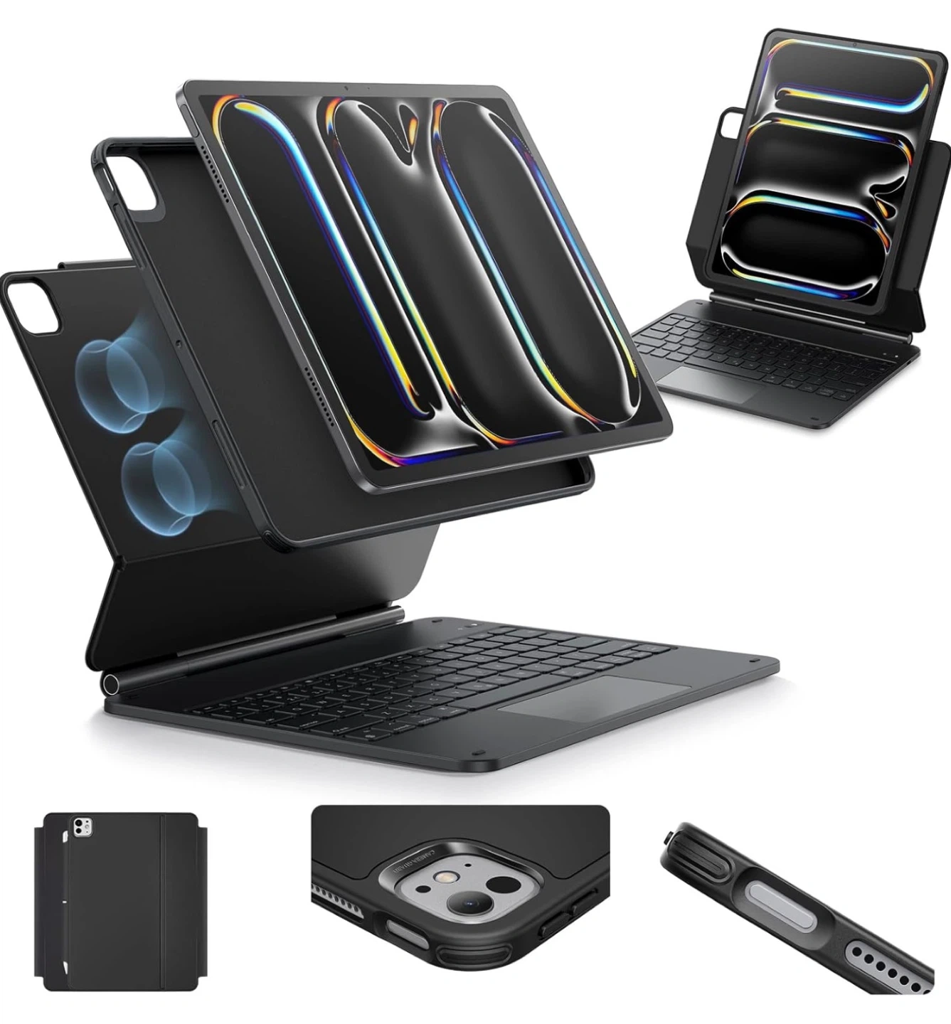 ESR iPad Air 13 Inch Case Keyboard (M3/M2, 2025/2024), Easy-Set Magnetic Stand, Portrait/Landscape Mode, Removable Case with Multi-Touch Trackpad, Rebound 360 Series, Black