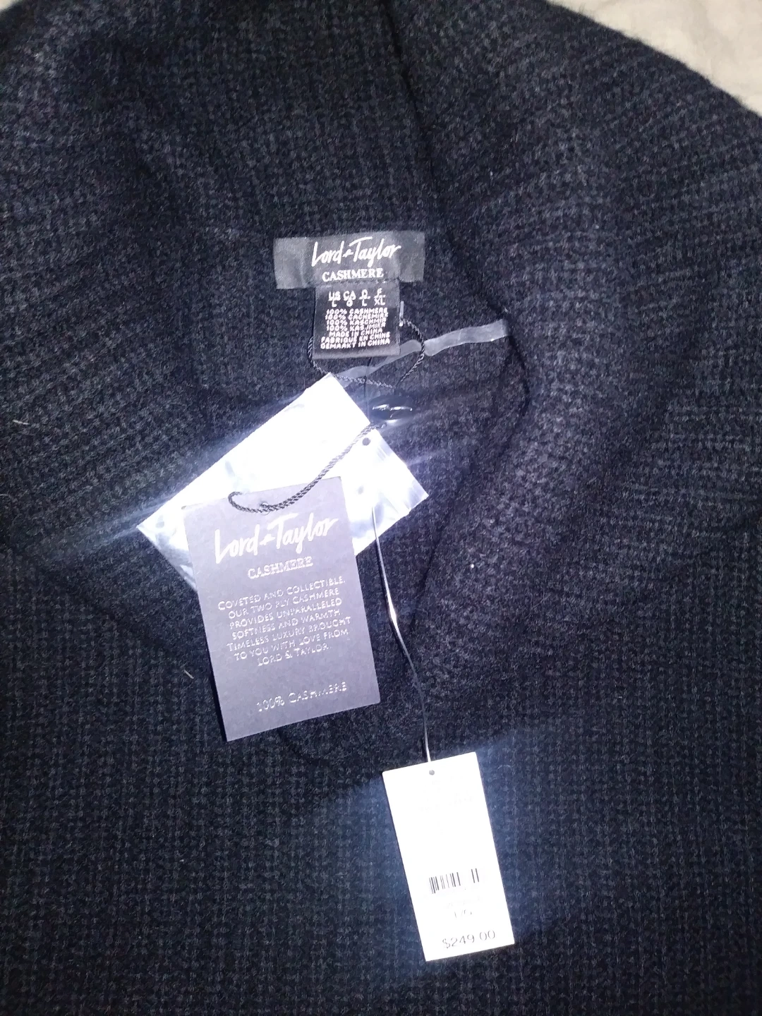This is a Lord & Taylor 100% cashmere turtleneck sweater. It's a two-ply knit for added warmth and softness. This cozy sweater is perfect for cooler weather.