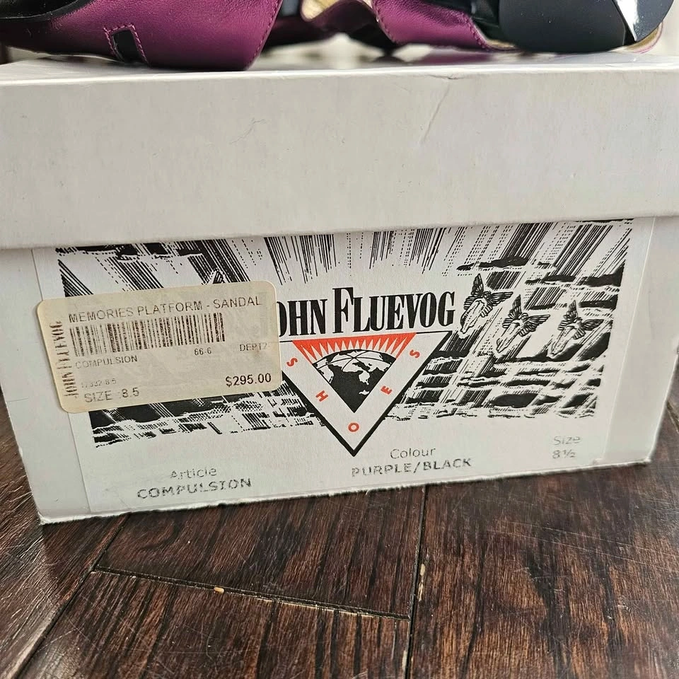8.5 new in box Fluevog Compulsion Memories Purple Black Heels