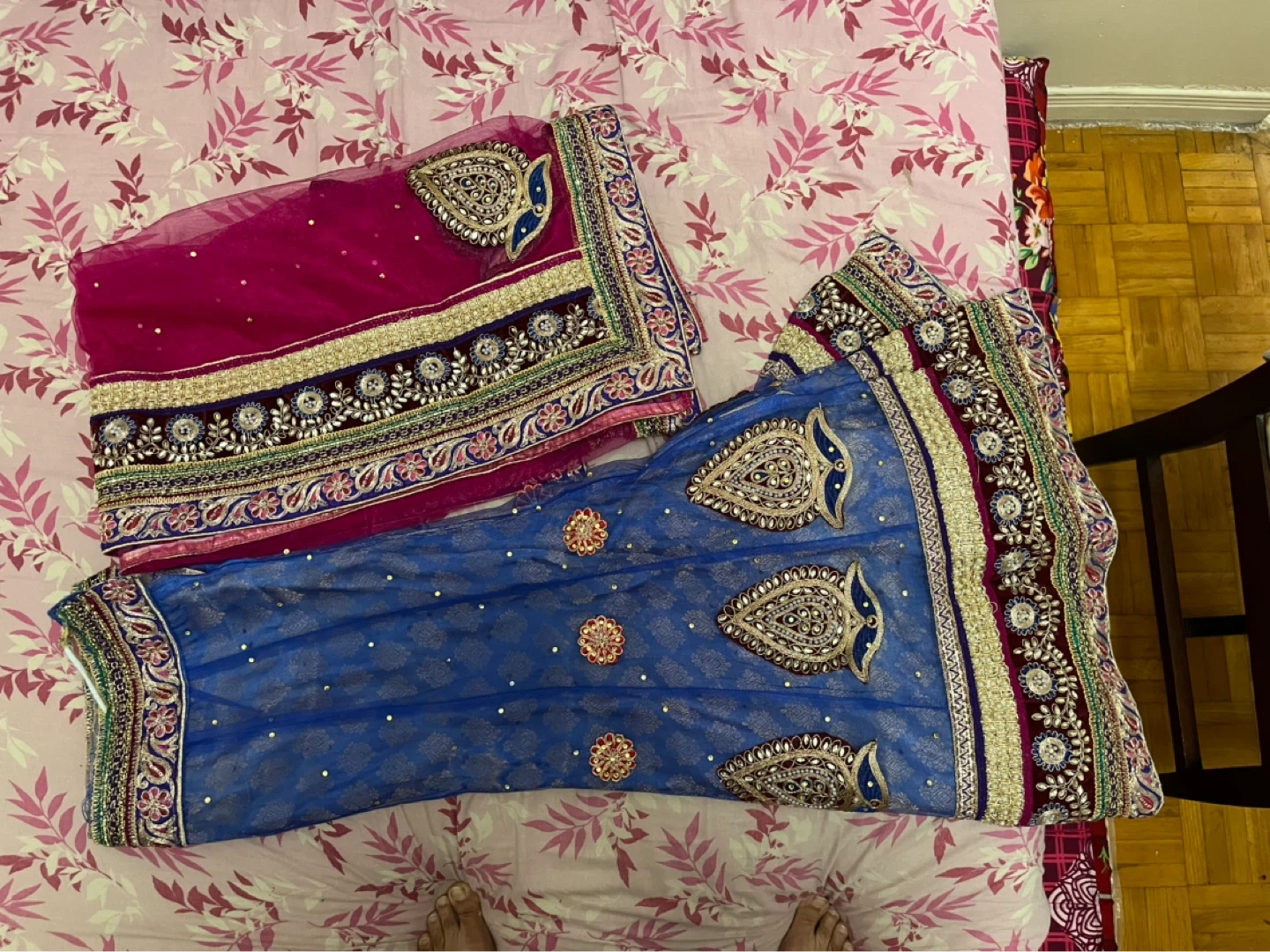 Blue and pink embroidered lehenga choli with dupatta