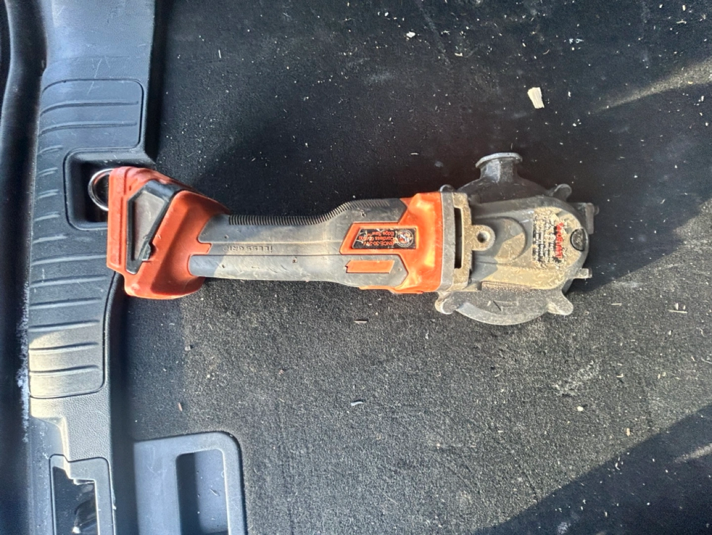 Ryobi 18V cordless PEX cutter. Used condition. Shows signs of wear. Includes cutting blade. Battery and charger not included.