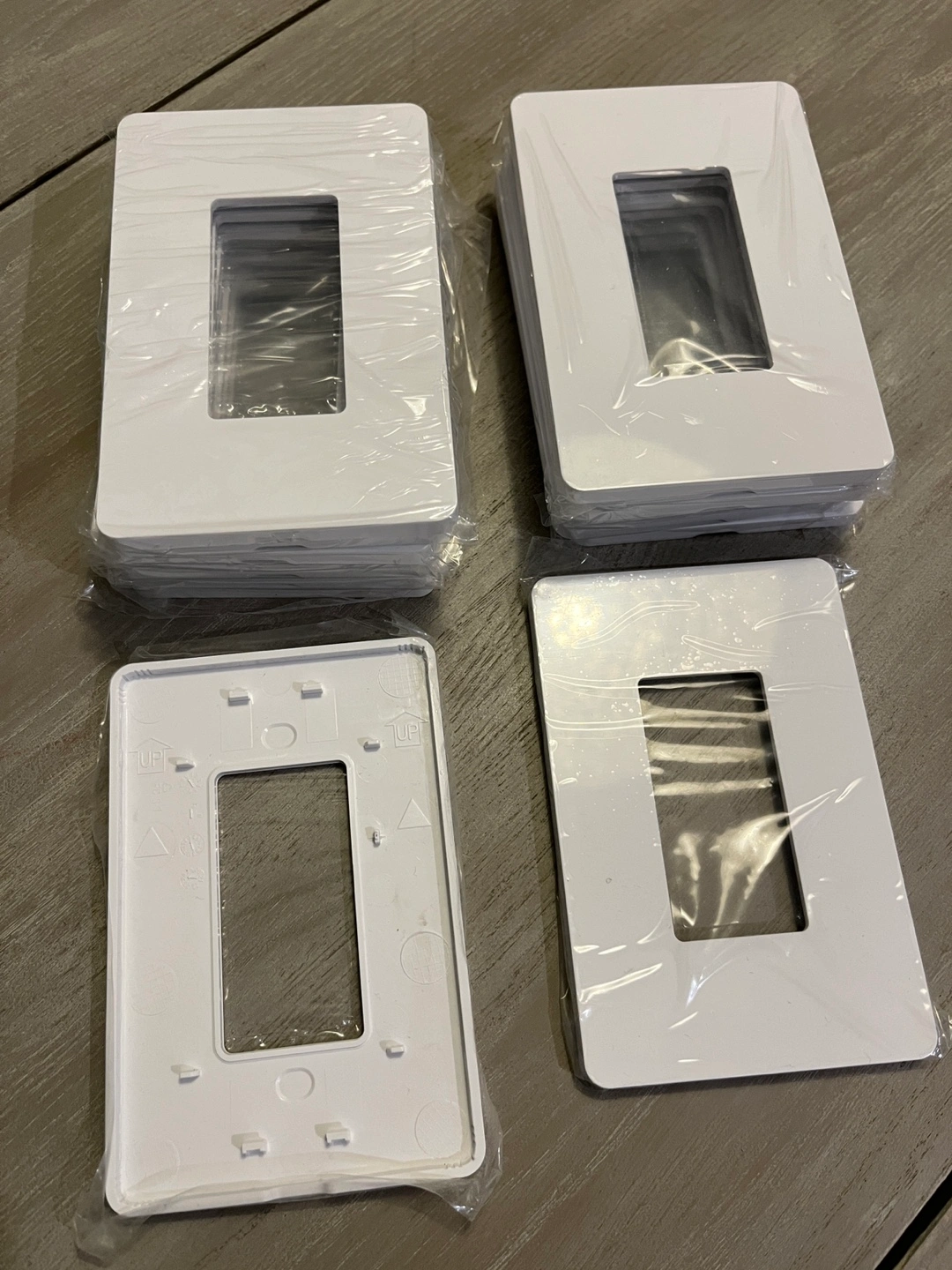 New, in plastic packaging. Several packs of single gang wall plates. Perfect for renovations or new builds. Great value!
