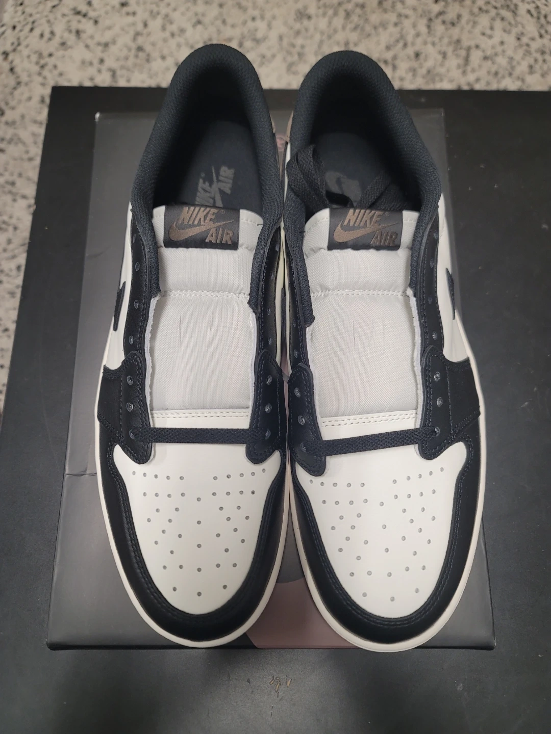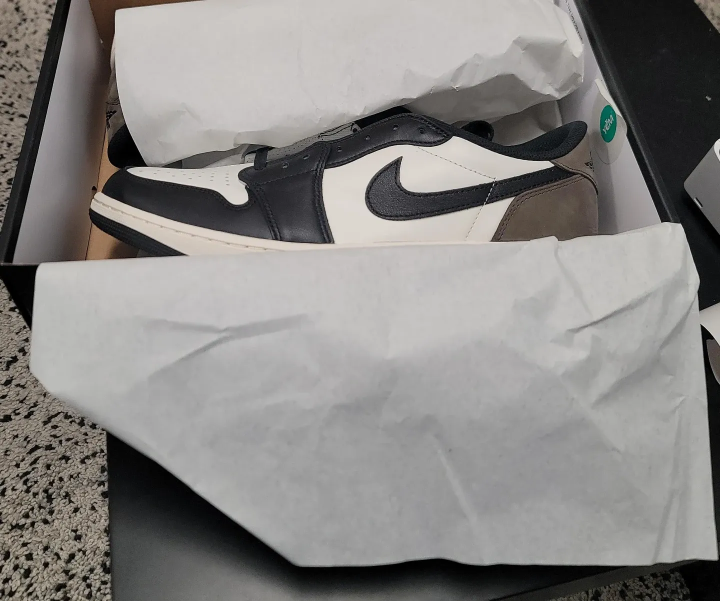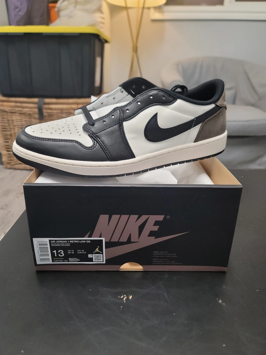 Selling a brand new pair of Air Jordan 1 Retro Low OG shoes in size 13. These are in the Black, White, and Dark Mocha colourway and come with the original box.