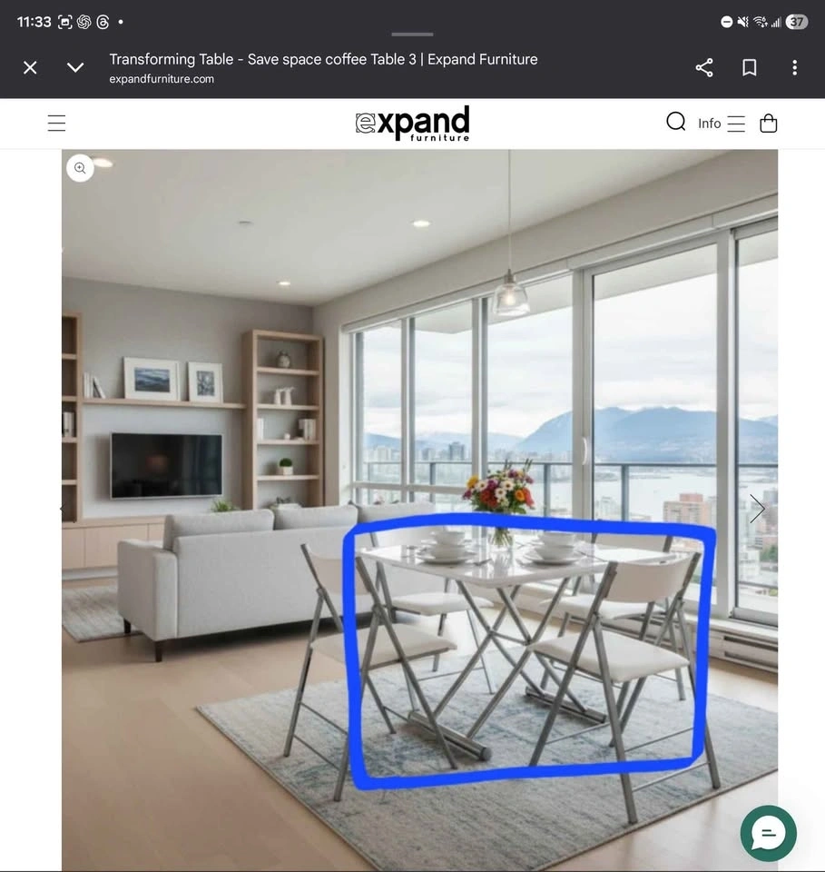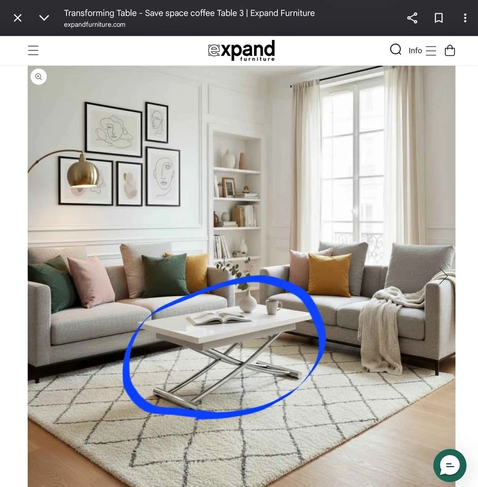 Modern space-saving coffee table from Expand Furniture, originally over $1200. This versatile table easily lifts, rotates, and unfolds into a full dining-height table, perfect for small apartments or condos. It features high-quality mechanics for smooth lifting and folding, all in a sleek, compact design. Converts from coffee table to dining table, with adjustable height from 8" to 30". The tabletop lifts, rotates, and folds open. Hidden wheels in the legs make it easy to move. Rounded corners offer a modern and safe design. Fully assembled and ready to use. Condition is very good, with a small, minor scuff on one leg that is not very noticeable. Great for condos, small spaces, or anyone who loves smart, multifunctional furniture.