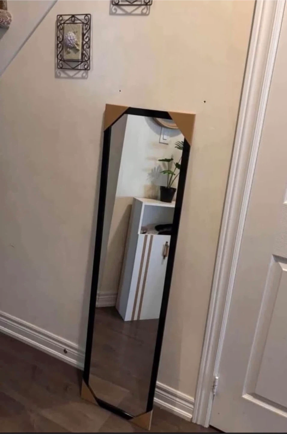 Brand new mirror very very light weight and easy to handle. It has hooks to hang on wall too.