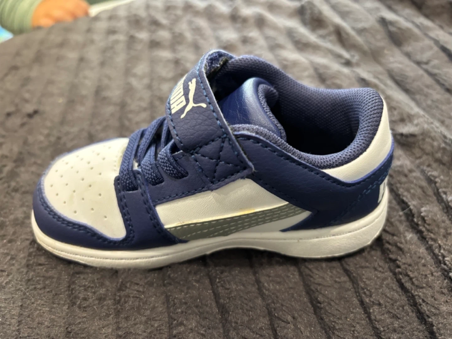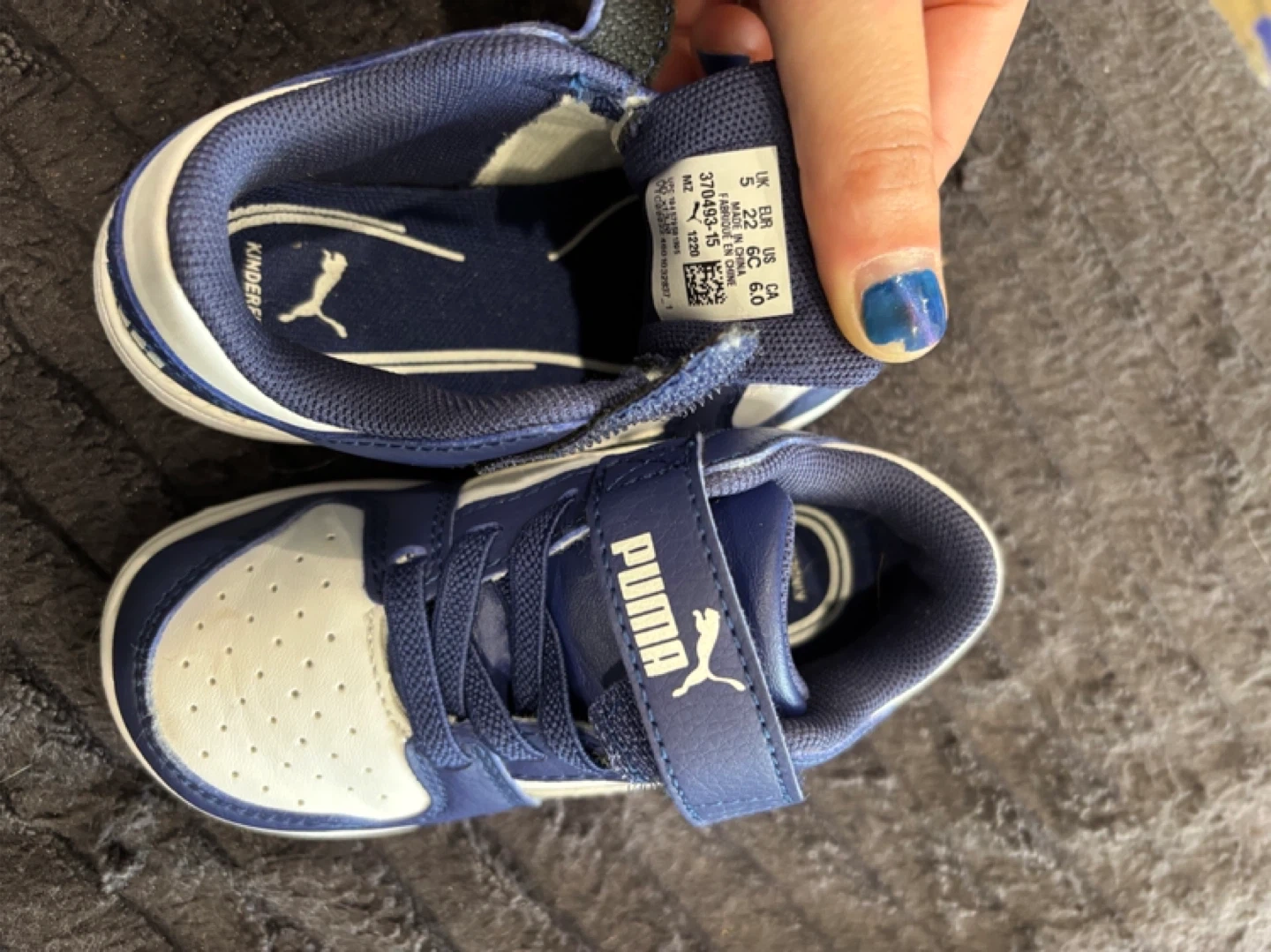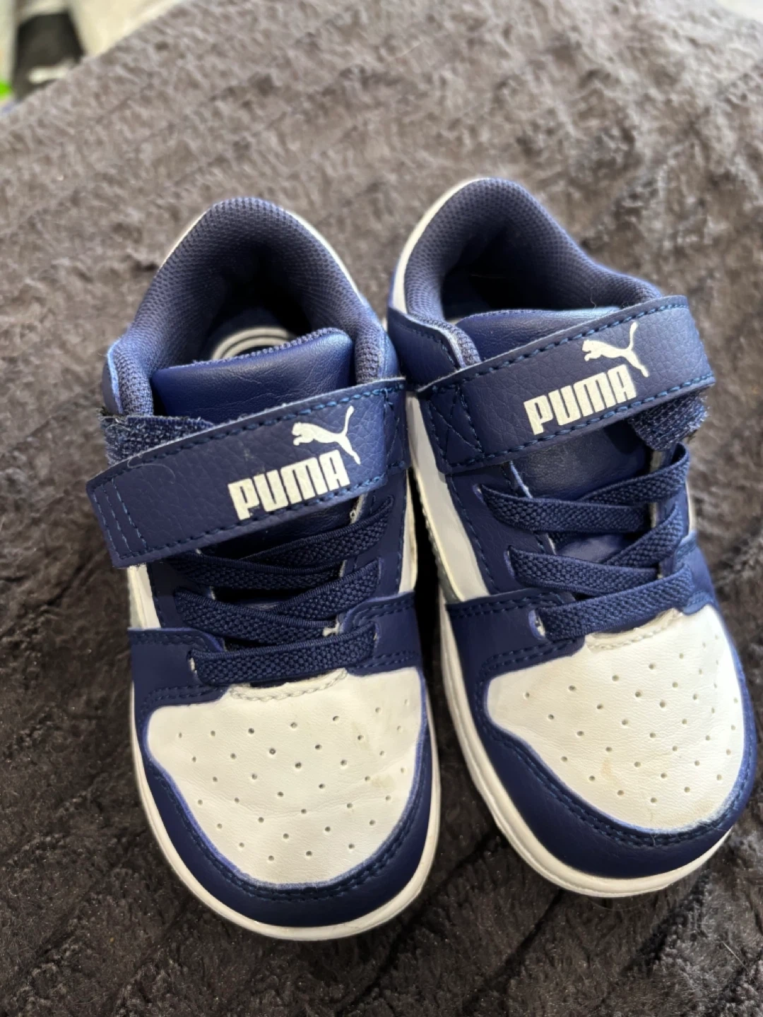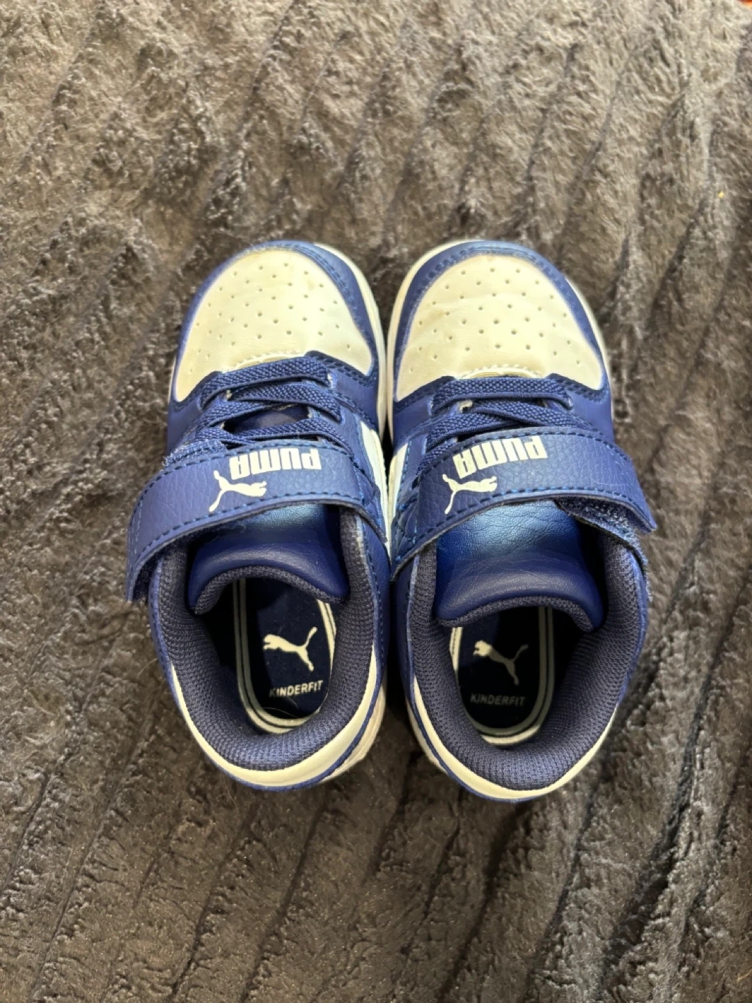 Selling a pair of Puma toddler sneakers in size 6C. They're in great condition and feature a blue and white colour scheme with the classic Puma logo. Perfect for your little one!