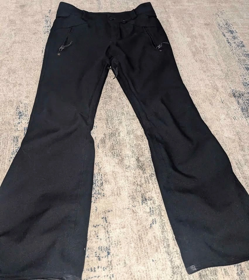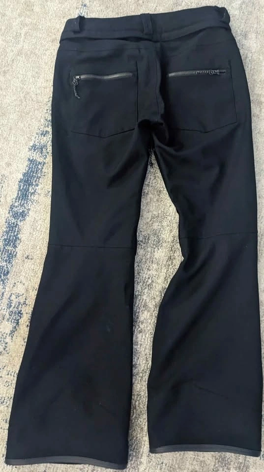 Black Volcom snow pants with zippered pockets front and back. Tapered waterproof gater ankles, size S. These are the most flattering snow pants you will ever own, incredibly comfortable and very form-fitting like your favorite pair of jeans. You will not be disappointed. Great condition!
