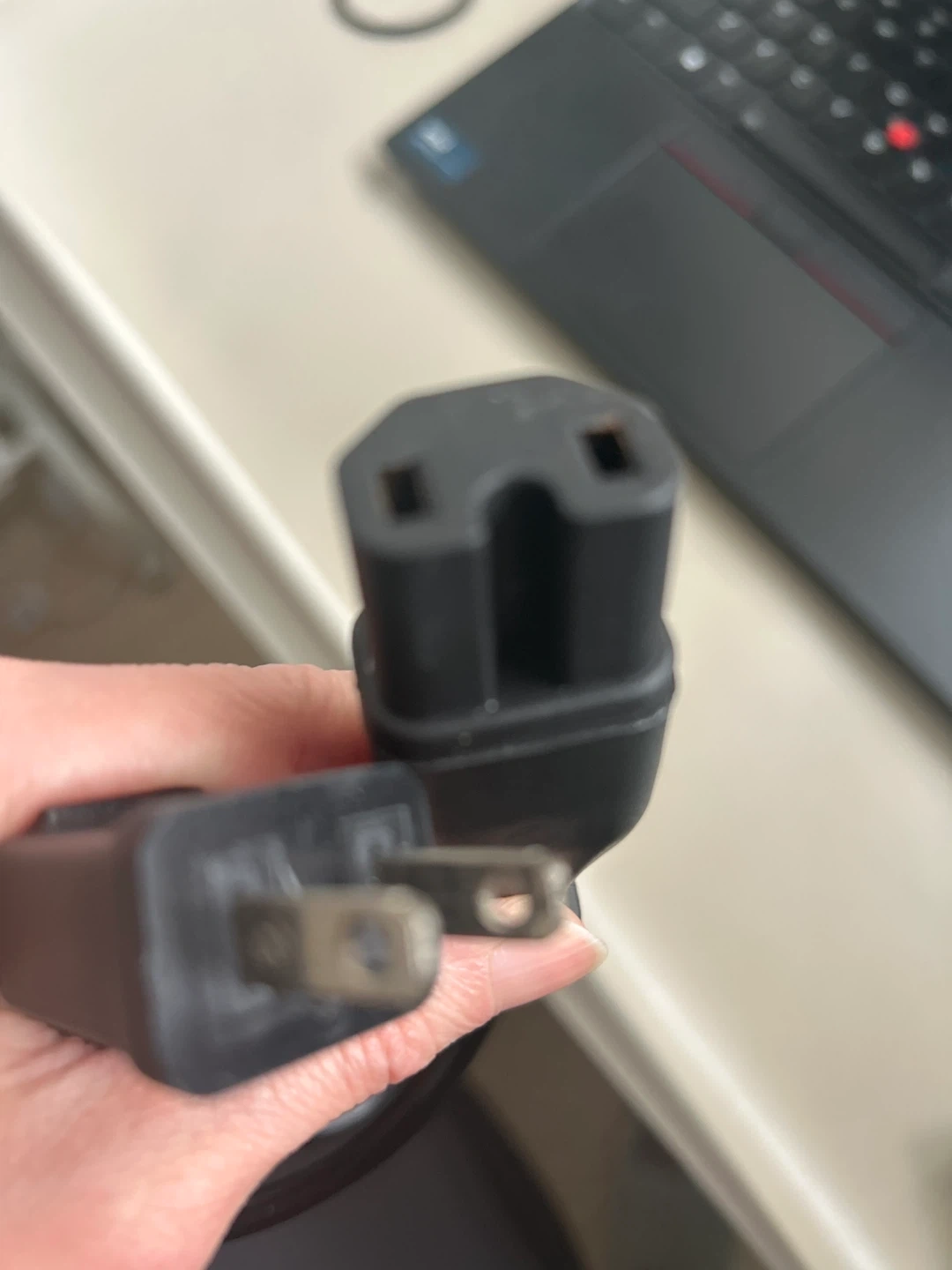This is a power cable with a standard North American plug on one end and a C13 connector on the other. It's great for connecting various electronic devices to a wall outlet. Black colour, standard length.