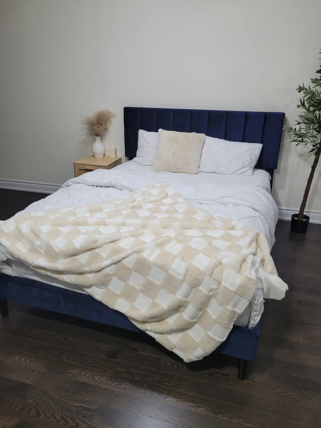 Blue Velvet Queen Bed Frame with Upholstered Headboard