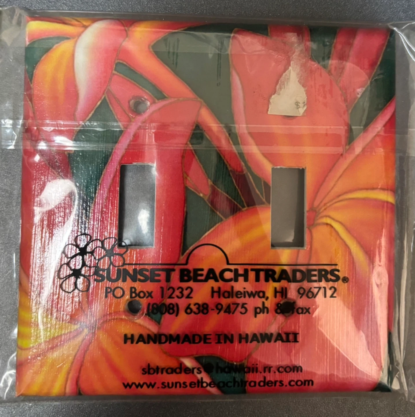 Add a touch of tropical flair to any room with these beautiful, double light switch plate covers. Features vibrant floral designs inspired by Hawaii. Easy to install and clean. Bought in Hawaii.