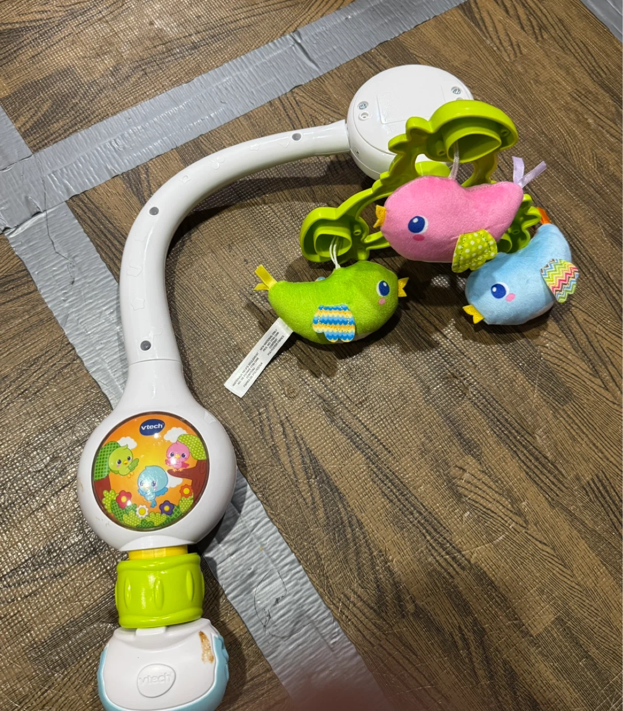 This VTech crib mobile plays music and features three soft, plush bird toys that hang down. It attaches easily to most cribs. Helps soothe baby at bedtime!