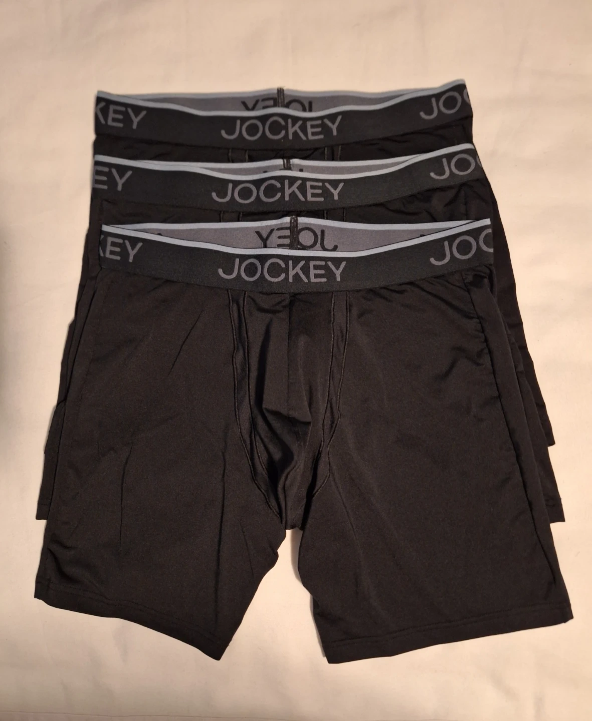 Selling a set of Jockey boxer briefs in size medium. They're in great condition and ready for a new home! The material is soft and comfortable, perfect for everyday wear. Get these comfy boxer briefs today!