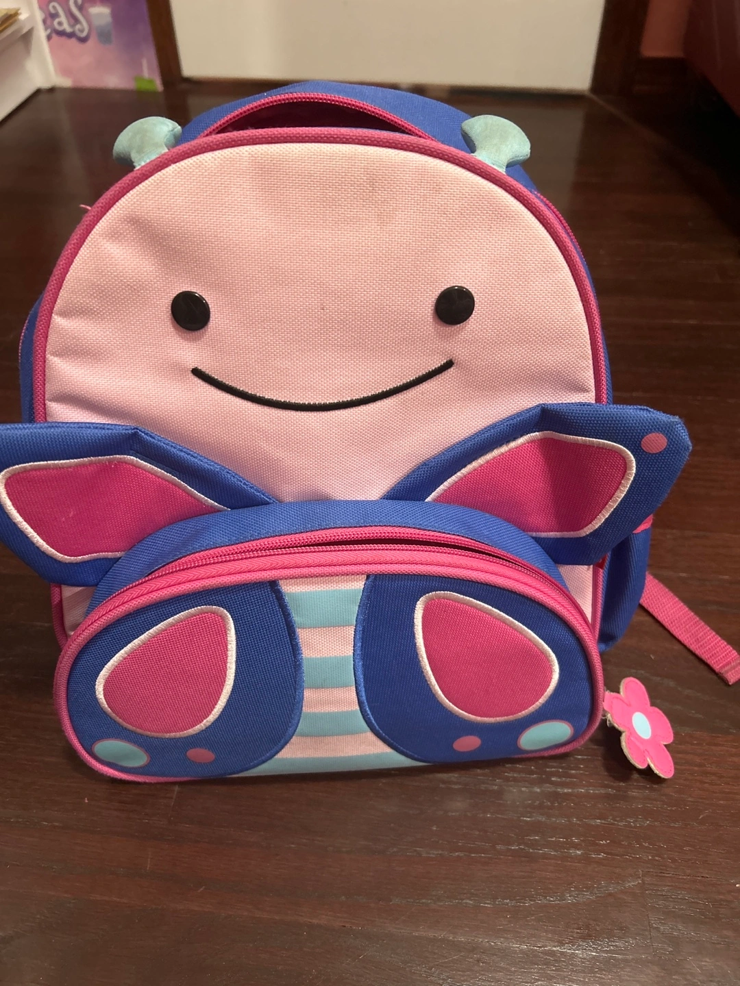 Pink and blue butterfly backpack. Small size, great for toddlers. Well used. Great for toddlers and pre schoolers. Let me know if interested.