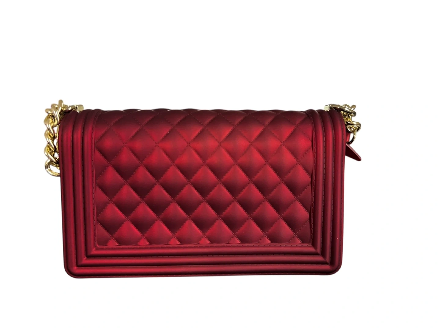 Selling a stylish red jelly purse featuring a distinctive quilted pattern and a chic gold chain. This purse is perfect for adding a pop of colour to any outfit. It's in great condition and ready for a new owner!