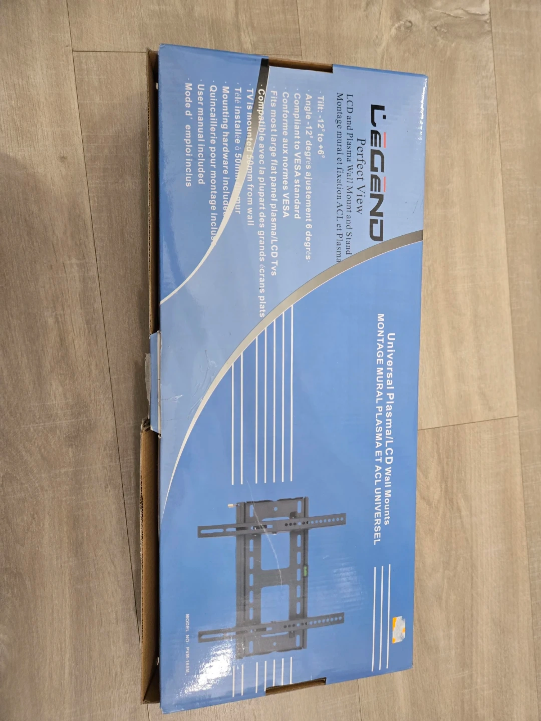 This LEGEND Perfect View wall mount is for universal plasma, LCD, and LED TVs. It offers tilt adjustment from -12 to +6 degrees and angle adjustment from -12 to +6 degrees. It's compatible with VESA standard and fits most large flat panel TVs. Mounting hardware is included.