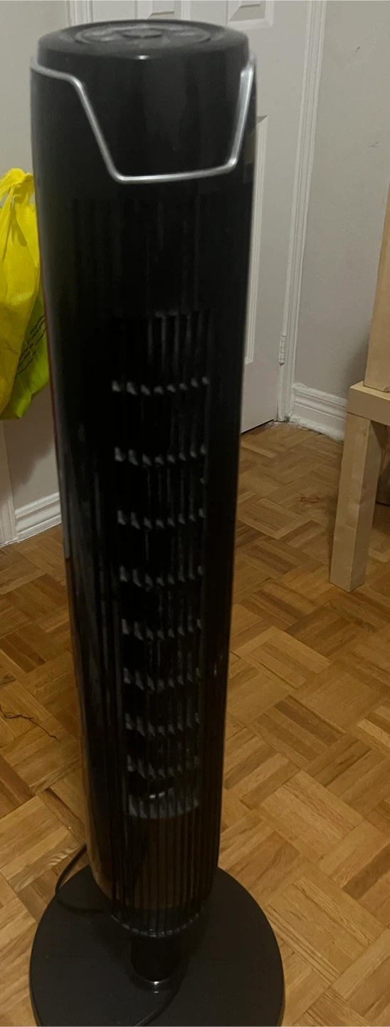 This is a black tower fan. It's tall and sleek for any room. Provides good air circulation.I don’t have any remote so selling for little chip but it works really well.