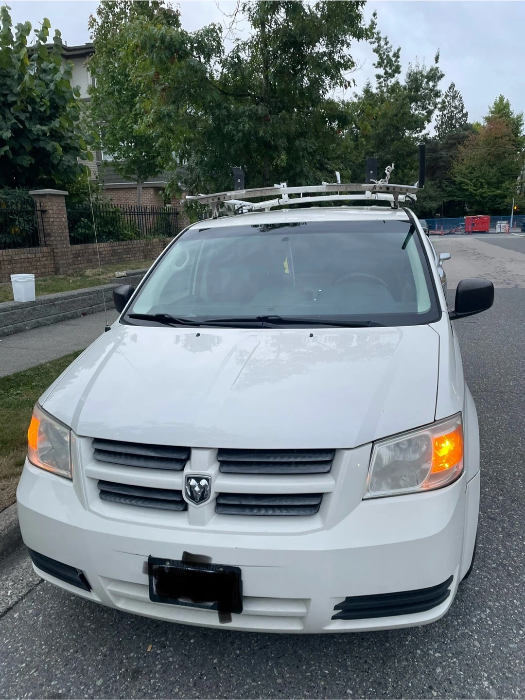 Selling a Dodge Grand Caravan 2008 CV. It's white and looks to be in good condition and clean title . Great for hauling cargo and everthing working great A.C , heating , cruise control and 80 % tires , new brakes . Odo metre - 161000 Shelves and ladder rack also included