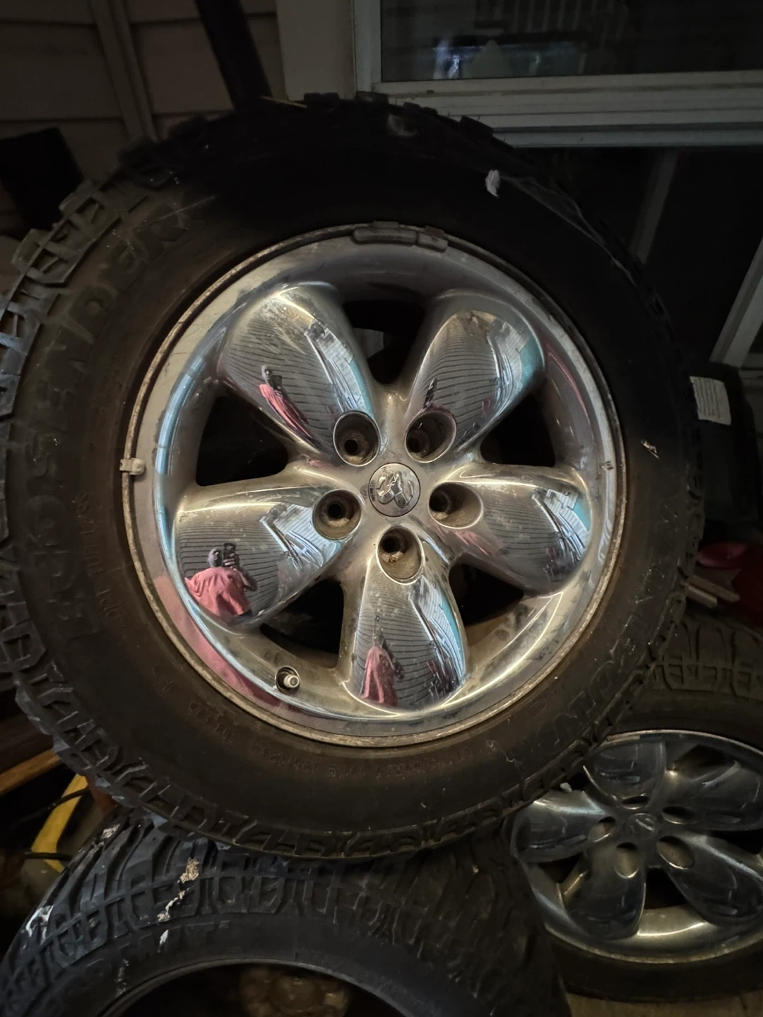 Selling a set of (4) Dodge Ram tires and rims. The tire size is 275/65R20. They are used but still have lots of life left in them!