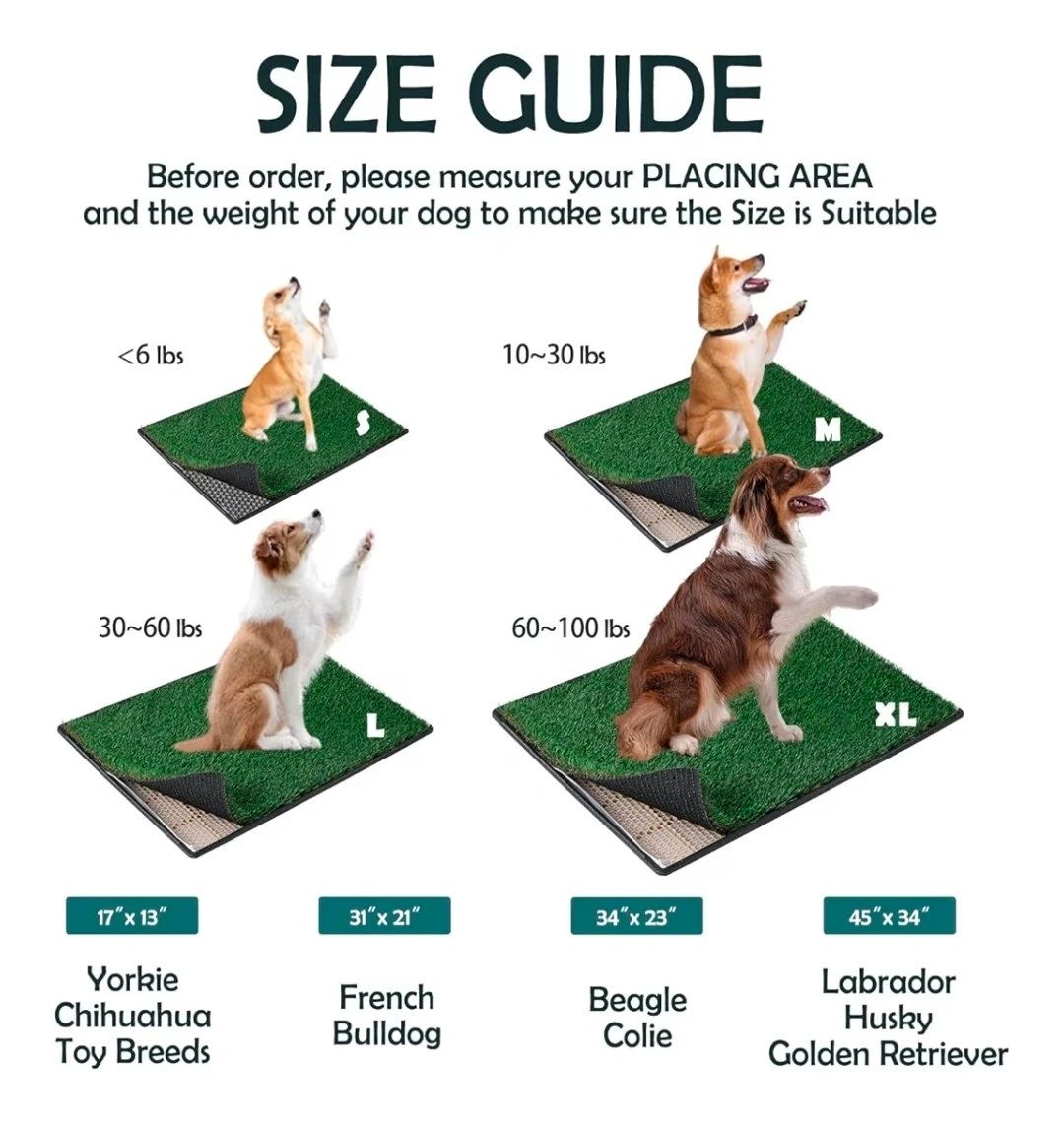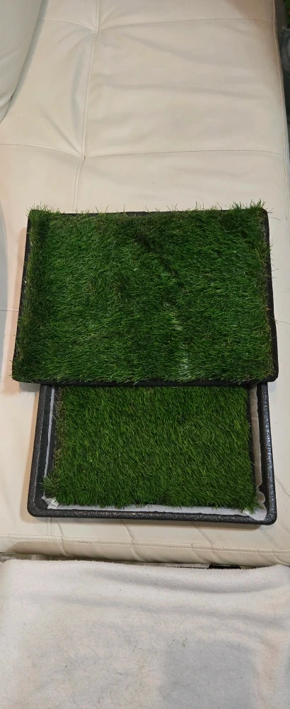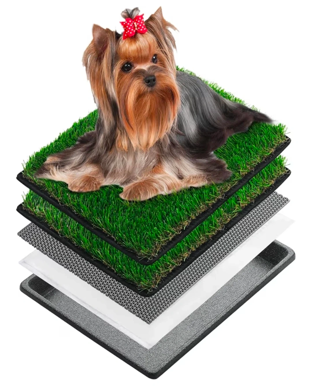 217Keep your furry friend comfortable with this artificial grass pee pad! It's designed to keep the grass elevated and clean from the pee pad. It's also easy to clean and protects your floor from urine. The 4-layer system is removable and replaceable for easy cleaning. It features artificial grass, a drainage grate, a disposable pee pad, and a plastic tray. It's small size, 17x13 inches, is perfect for puppies less than 6 lbs, like Yorkshire Terriers and Chihuahuas, etc.